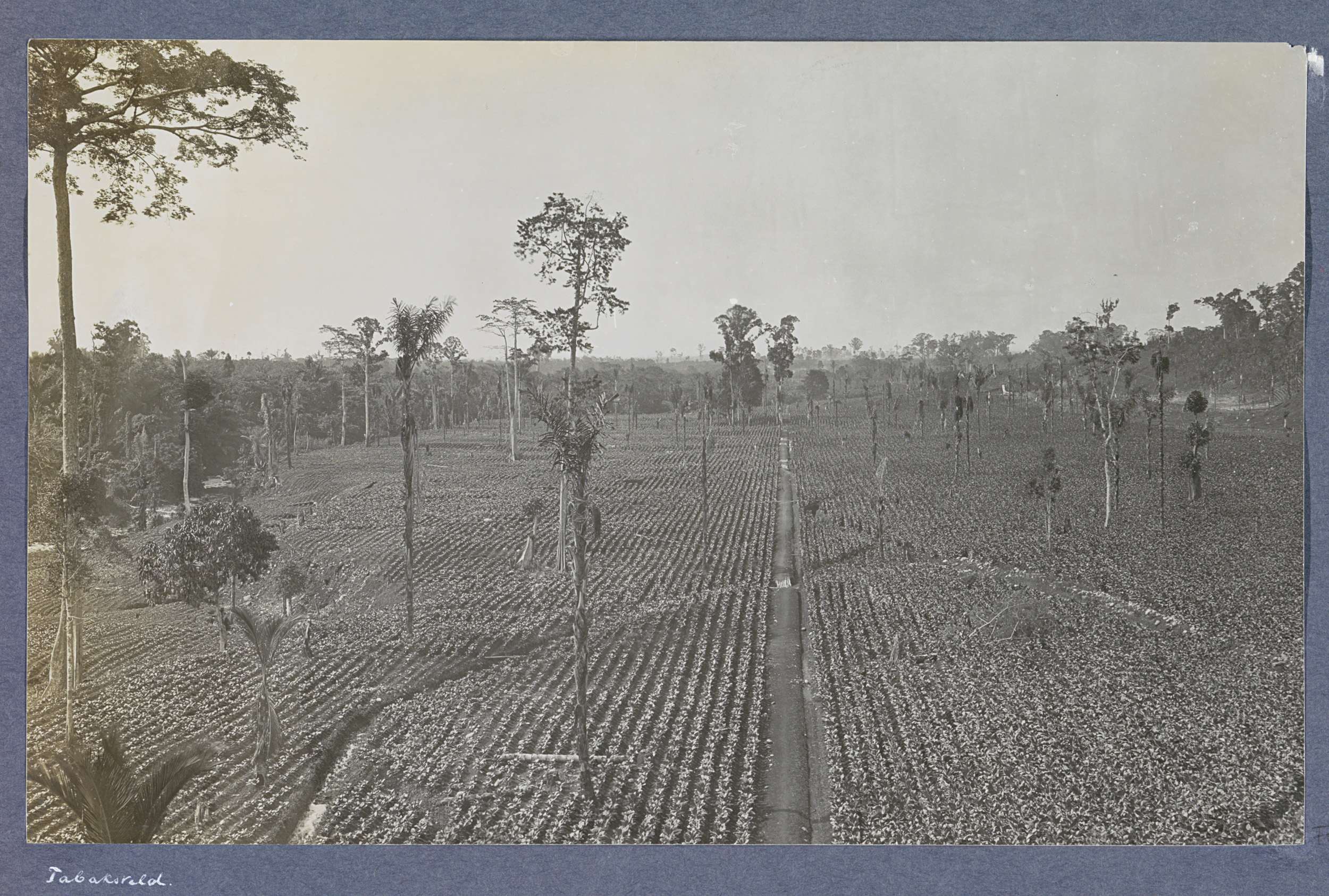Gezicht op een tabaksveld op Sumatra