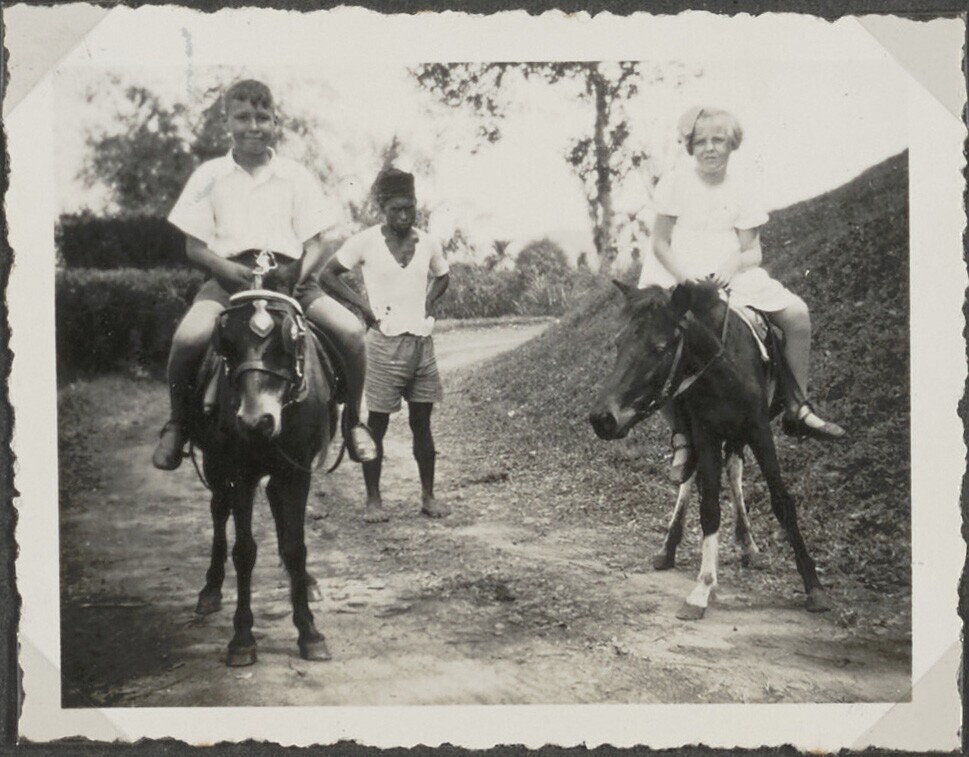 Een Nederlandse en een Javaanse man met kinderen sta...