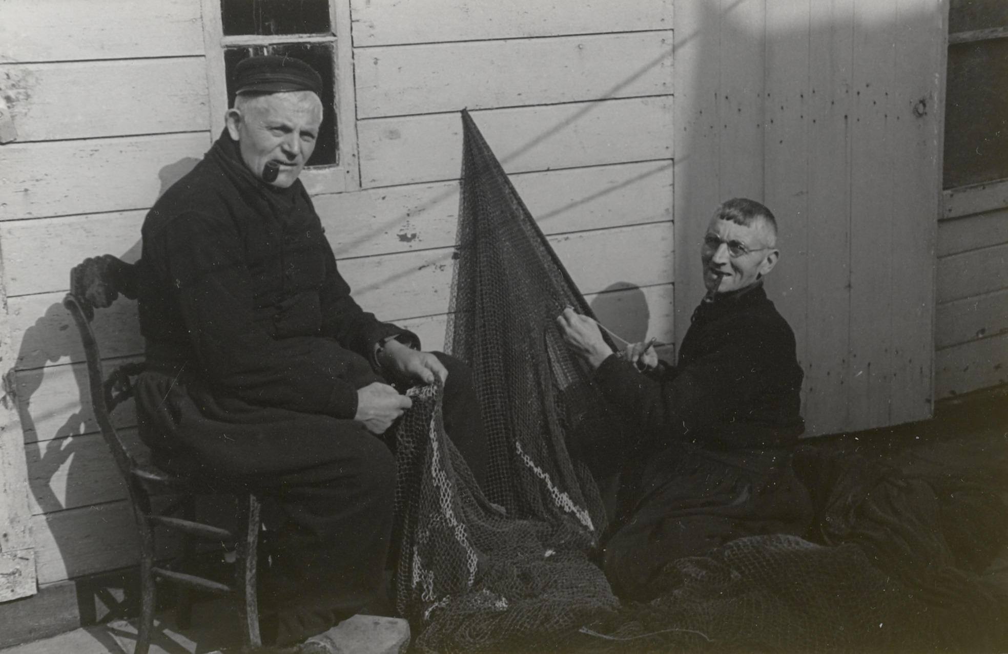 Nettenboetende mannen in Volendammer dracht, 1946 (z...