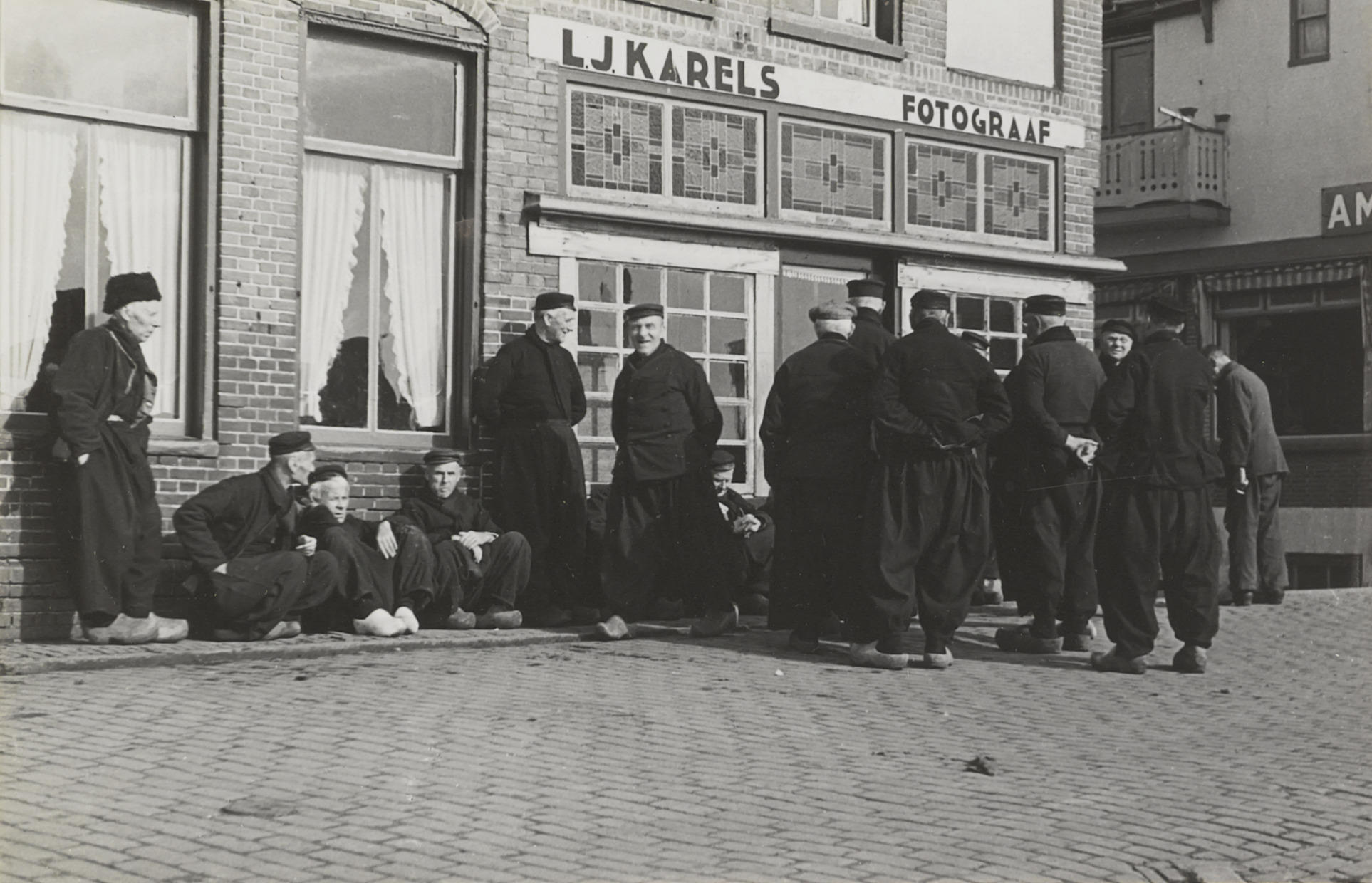 Groep mannen in Volendammer dracht, 1946 (zwart-wit ...