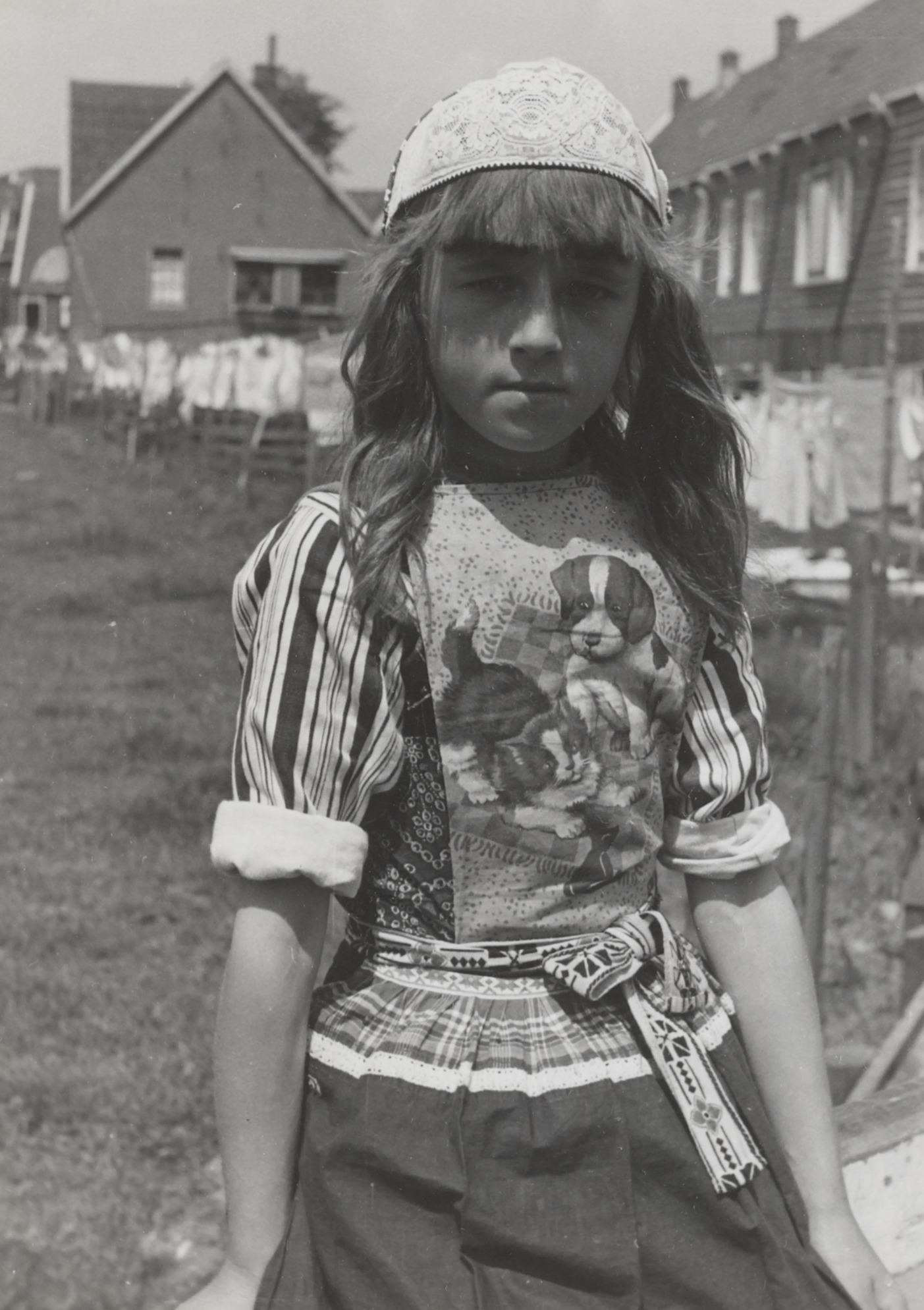 Meisje in Volendammer streekdracht, 1946 (zwart-wit ...