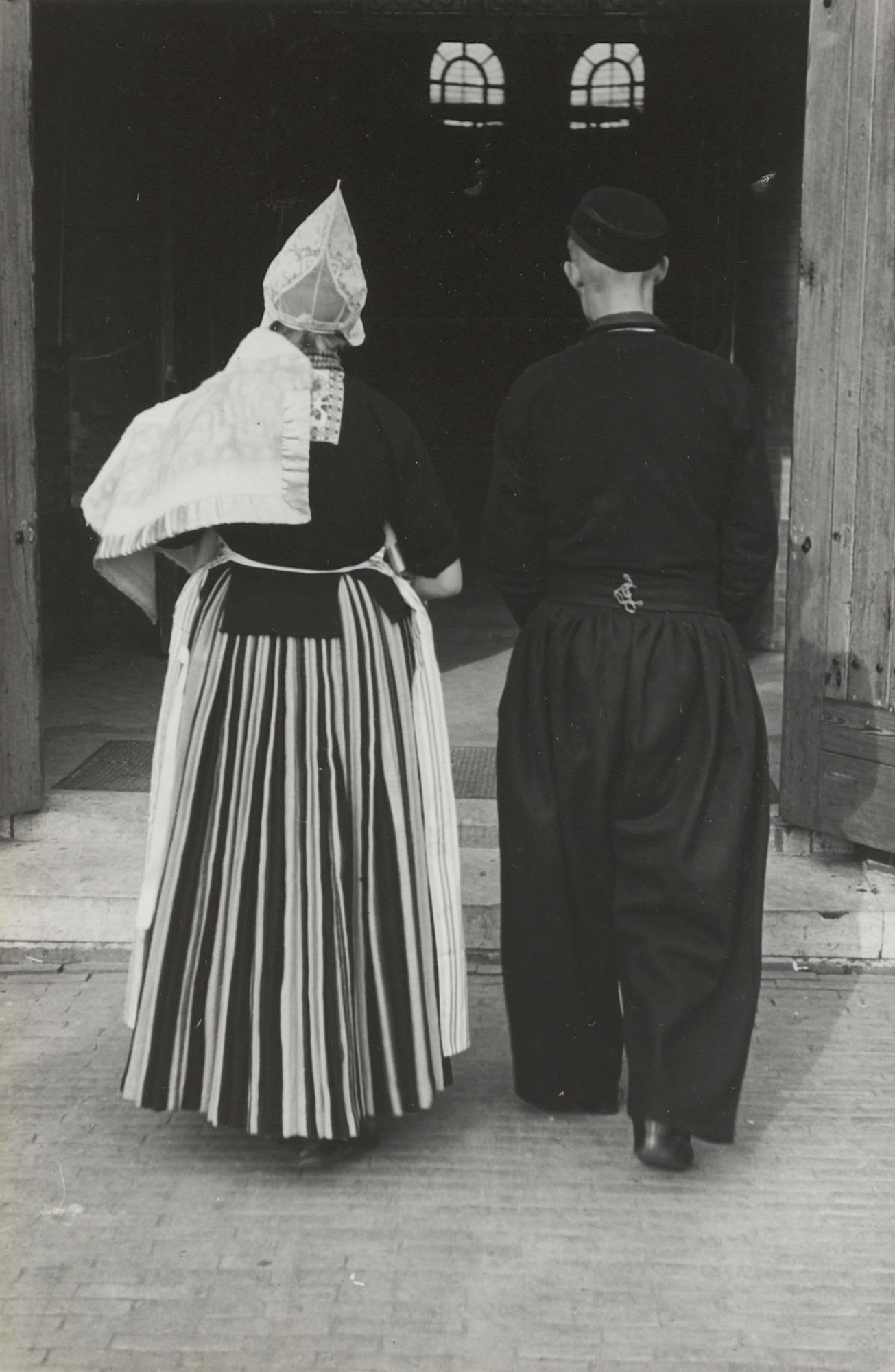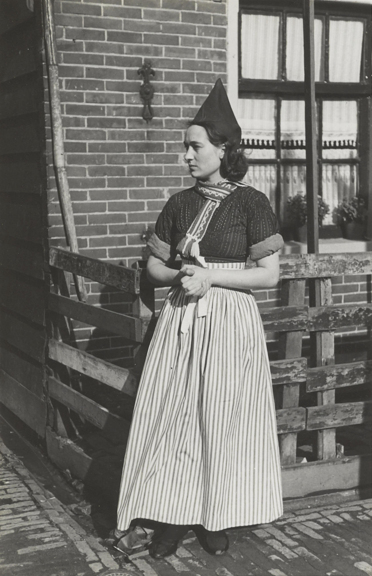 Vrouw in daagse dracht uit Volendam, 1946 (zwart-wit...