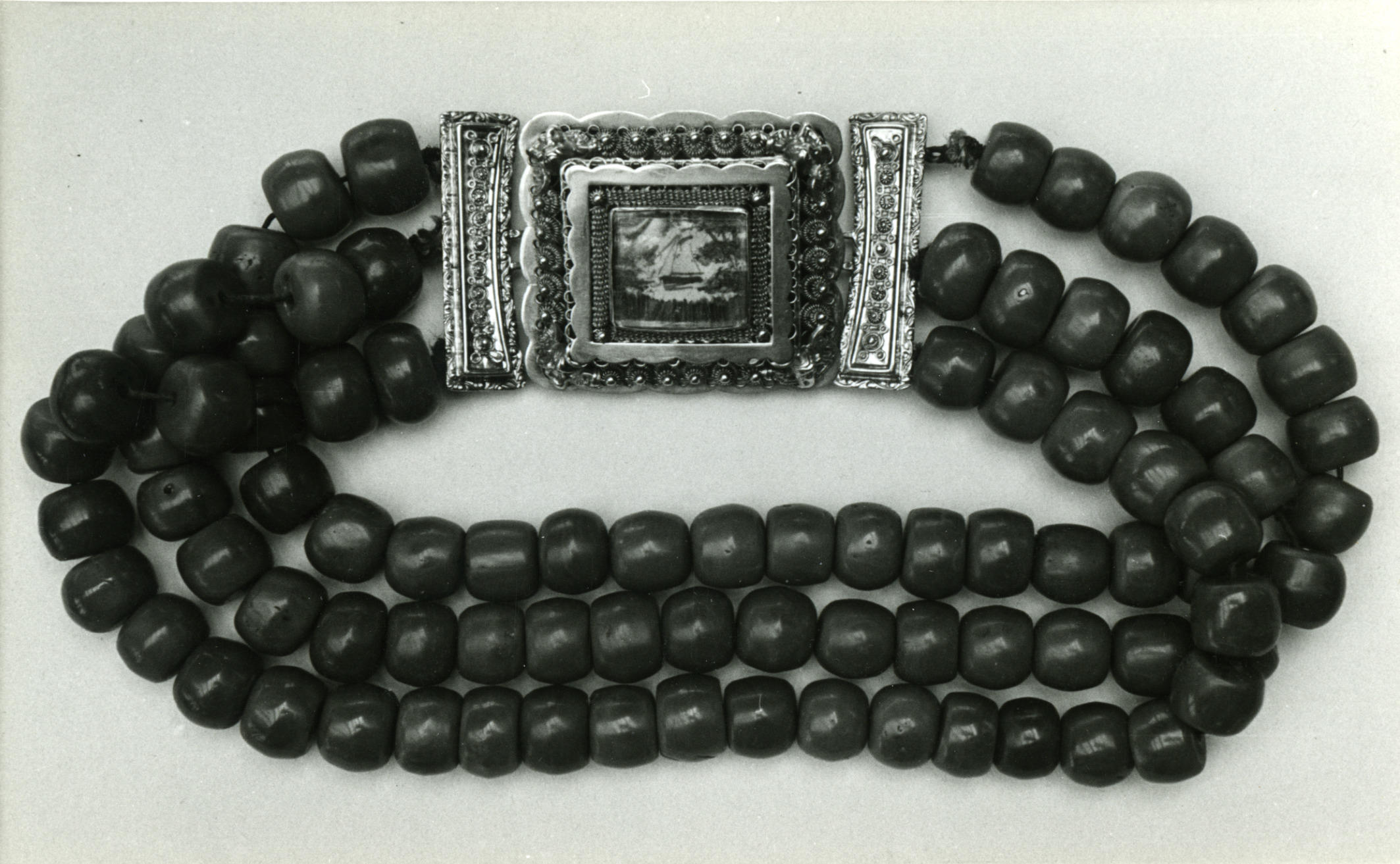 Achterzijde van halssnoer uit Volendam, 1946 (zwart-...
