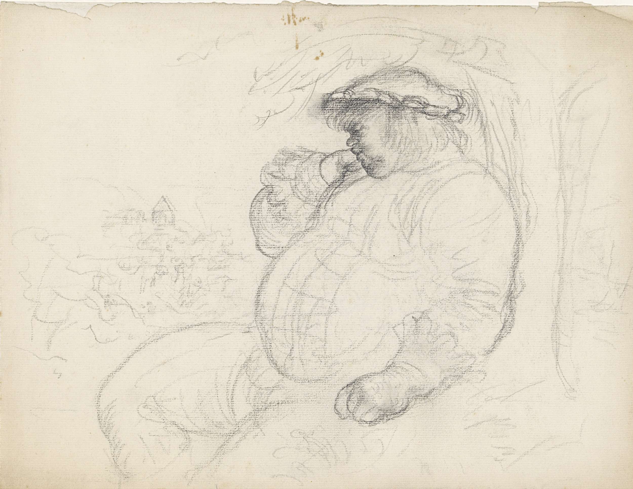 Slapende reus met zijn hoofd op zijn rechterhand leu...