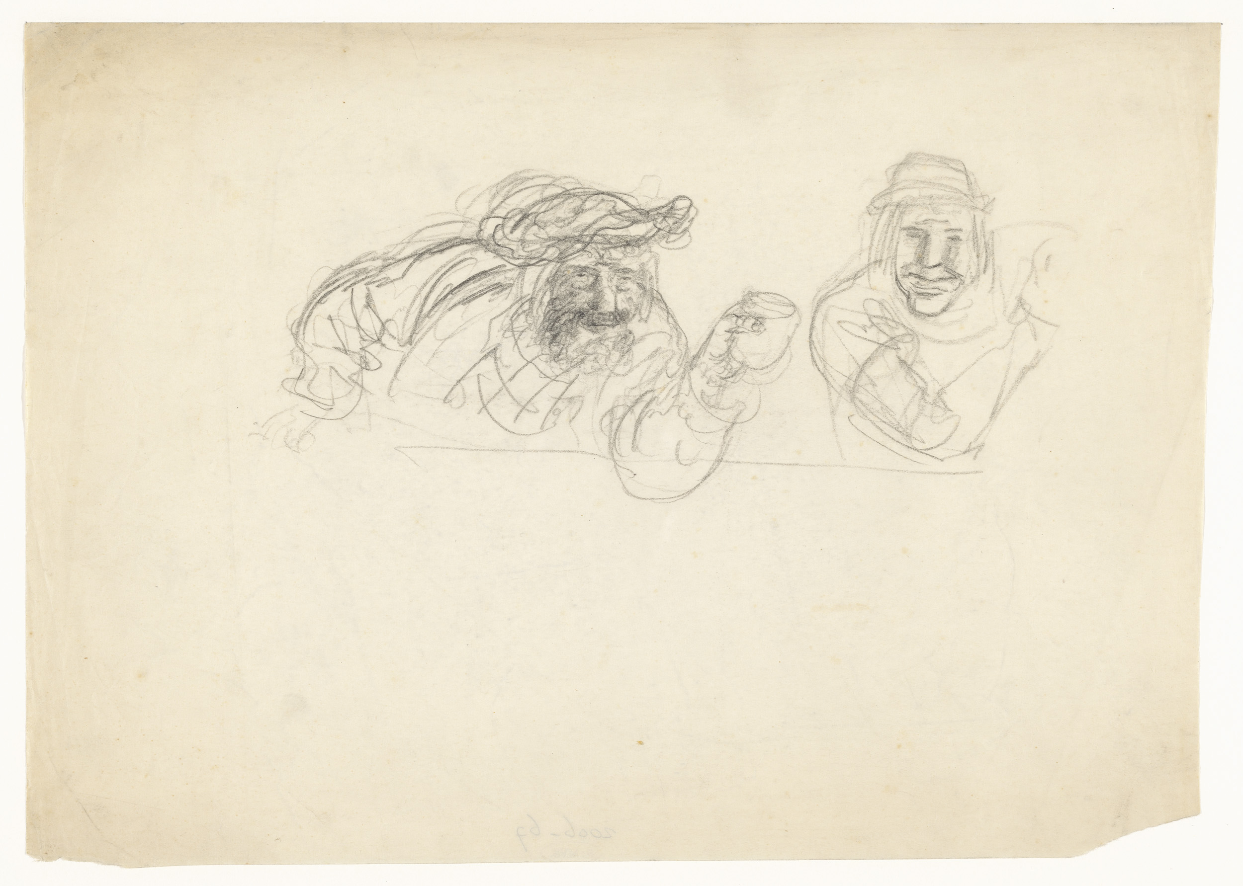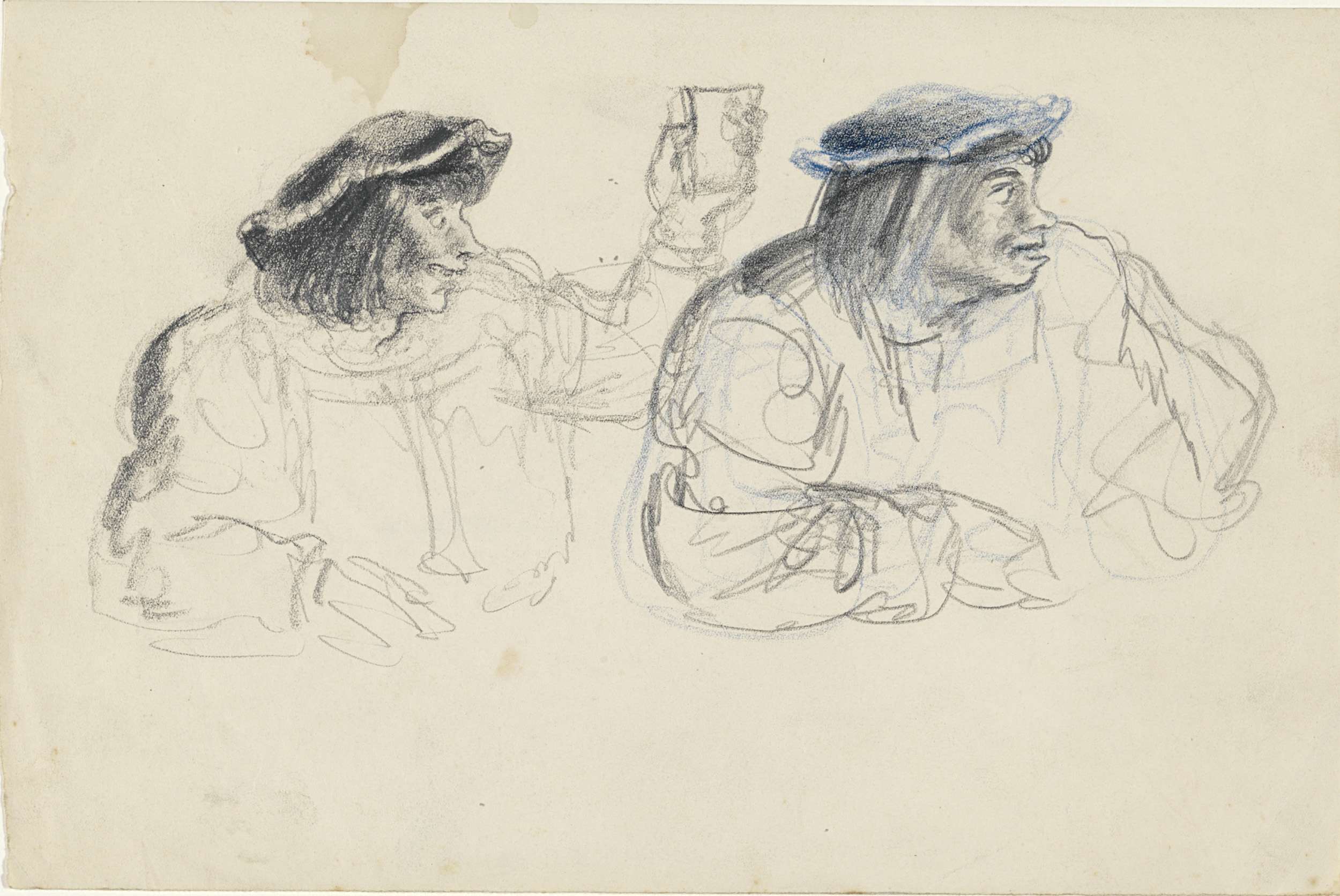 Twee mannen met een baret, de een met een geheven glas