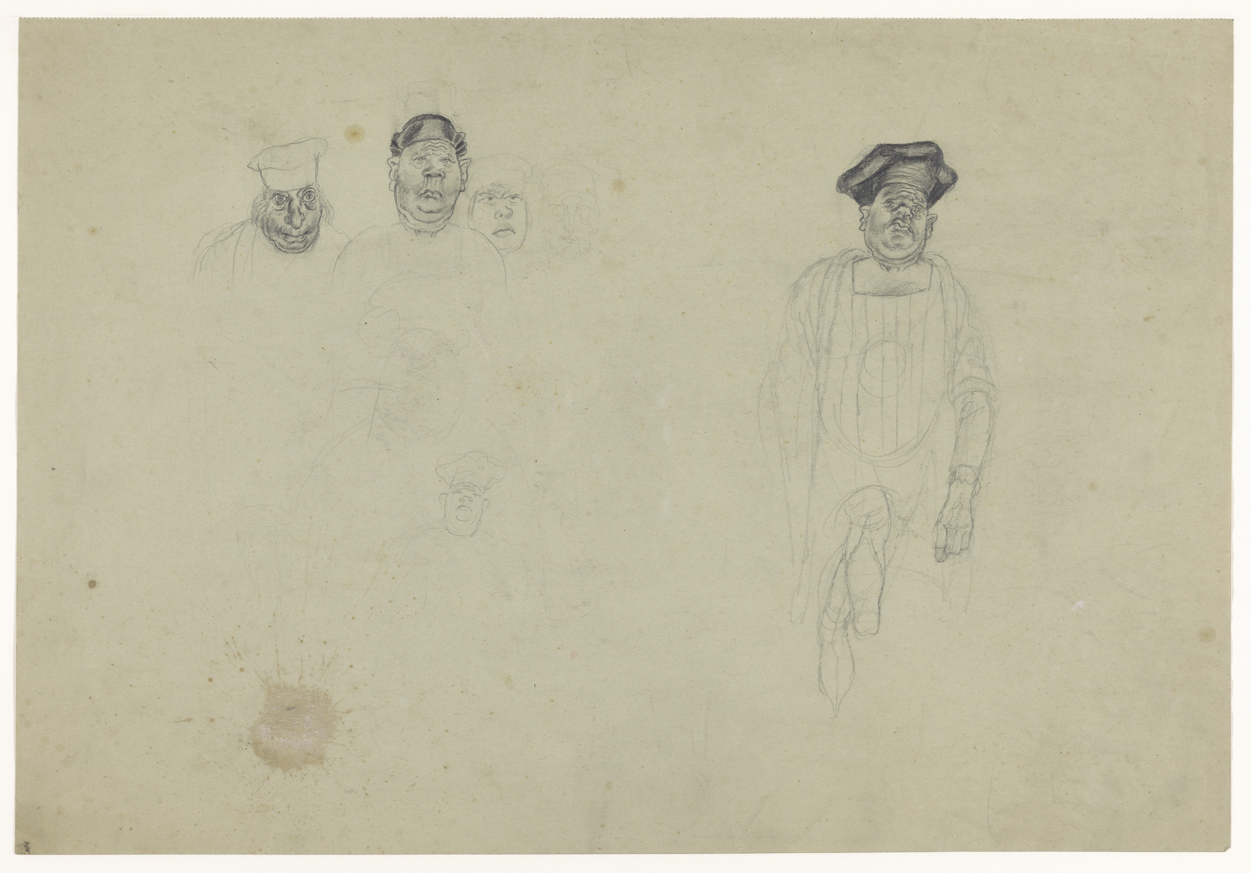 Staande man en twee bovenlichamen van mannen