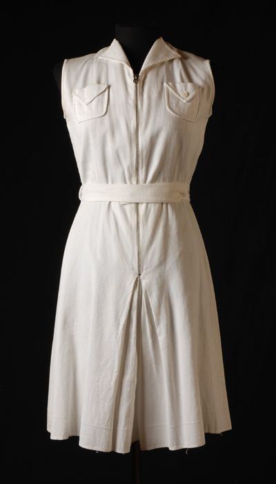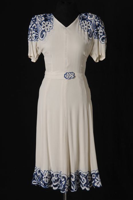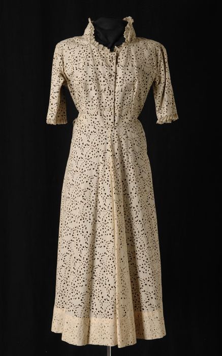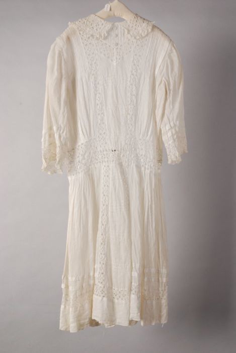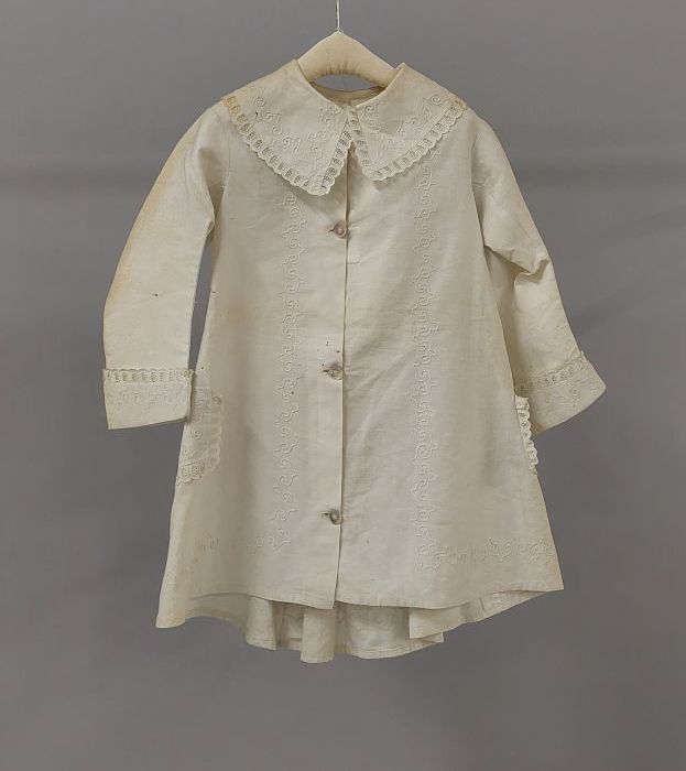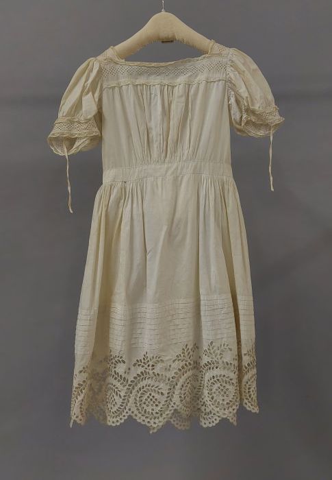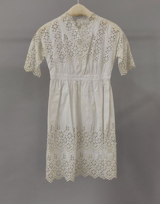 Kinderjurk van wit katoen met grof broderie, V-vormi...
