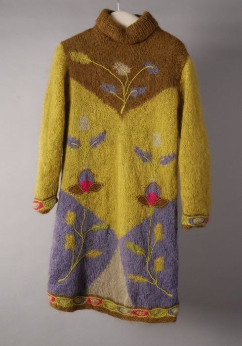 Groene kinderjurk van grof gebreid mohair, ingebreid...