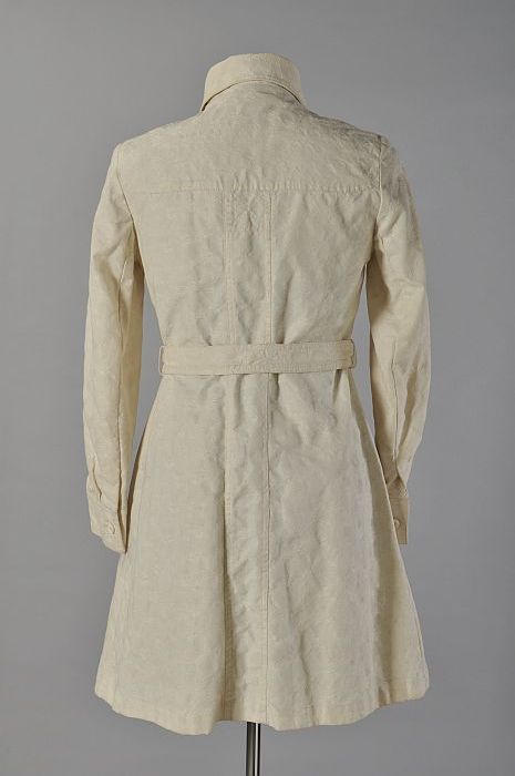 Trenchcoat van crèmekleurig katoen met ingeweven blo...
