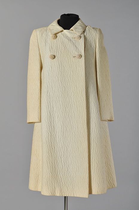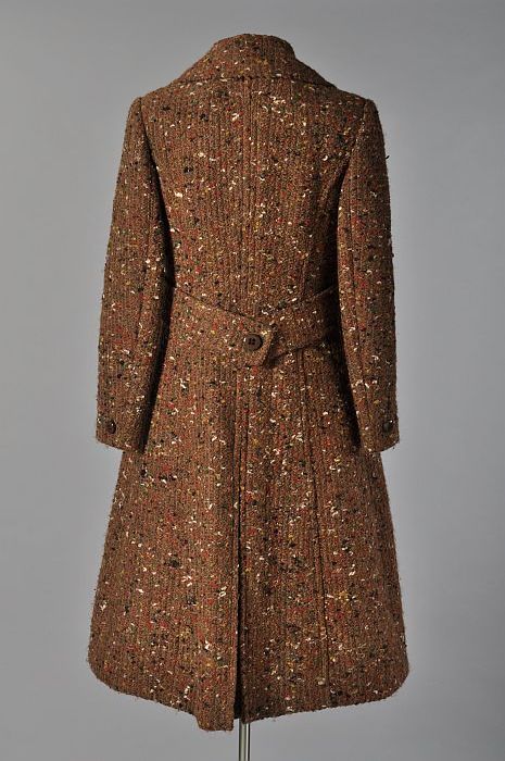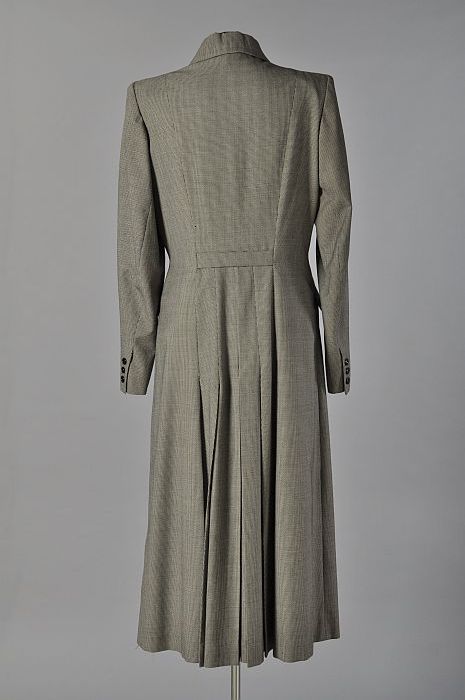 Knielange damesmantel van zwart en wit wollen tweed ...