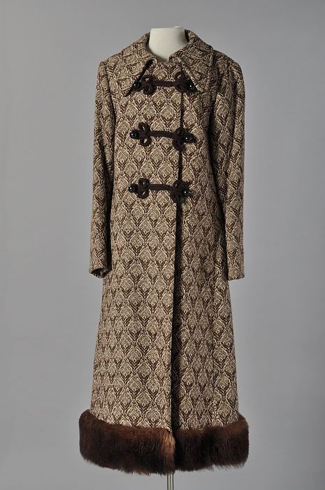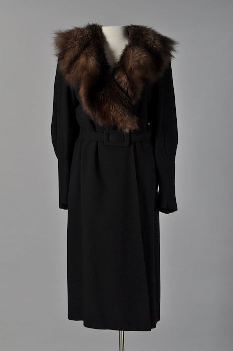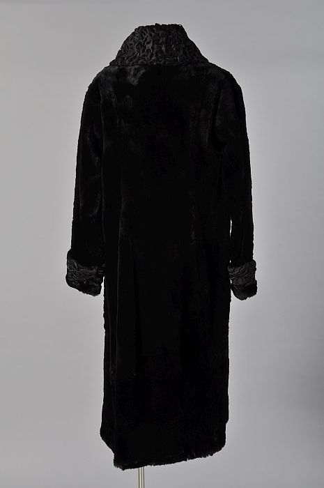 Zwarte damesmantel met bruine bontkraag, zilvervos