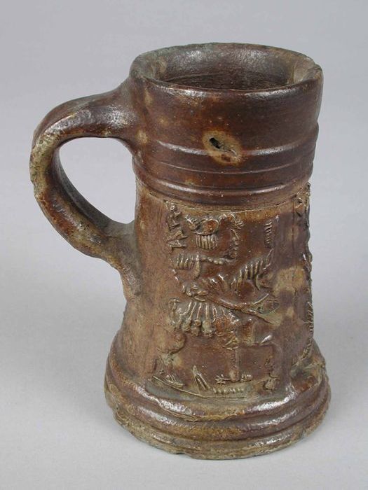 Steengoed drinkbeker, bierpul, taps van vorm met car...