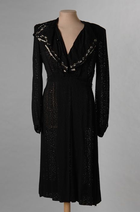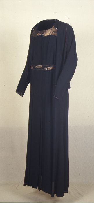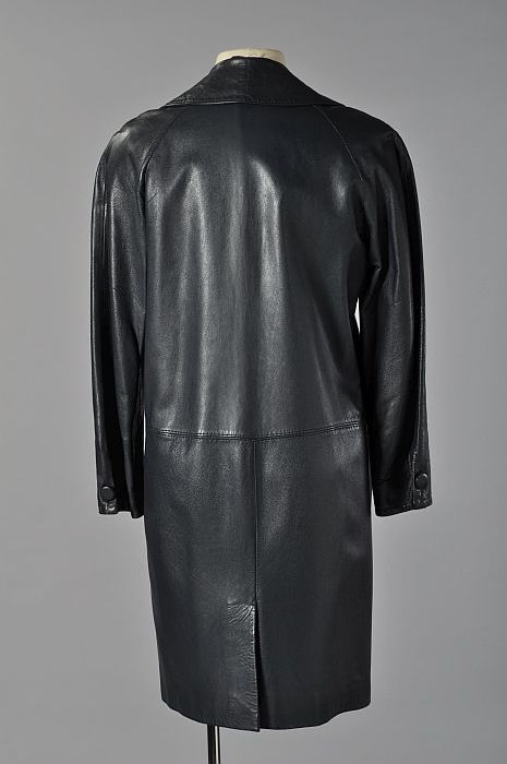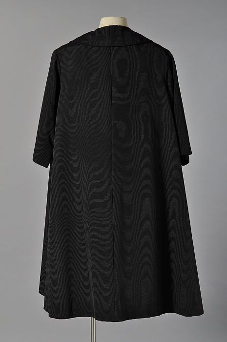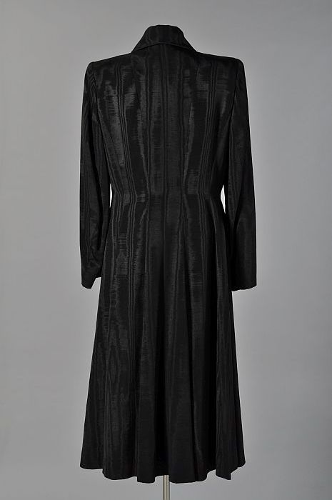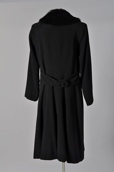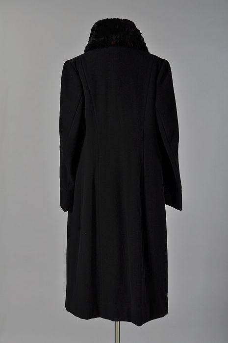Lange mantel van zwarte wol, brede kraag met kort en...