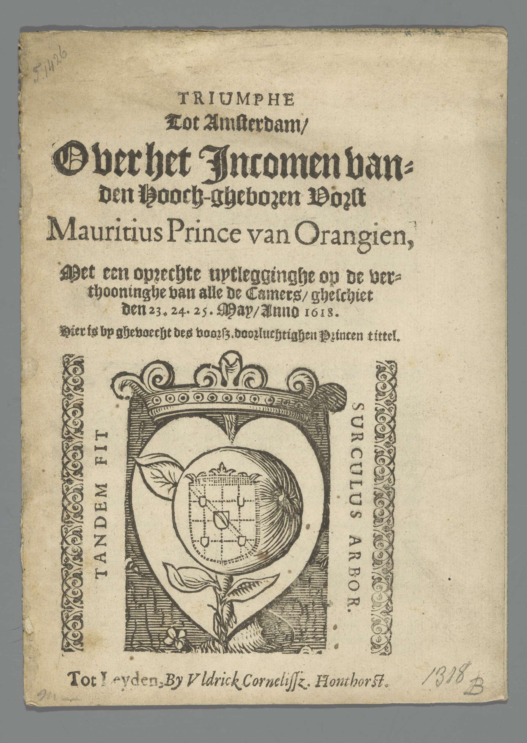 Titelpagina van het pamflet: Triumphe tot Amsterdam,...