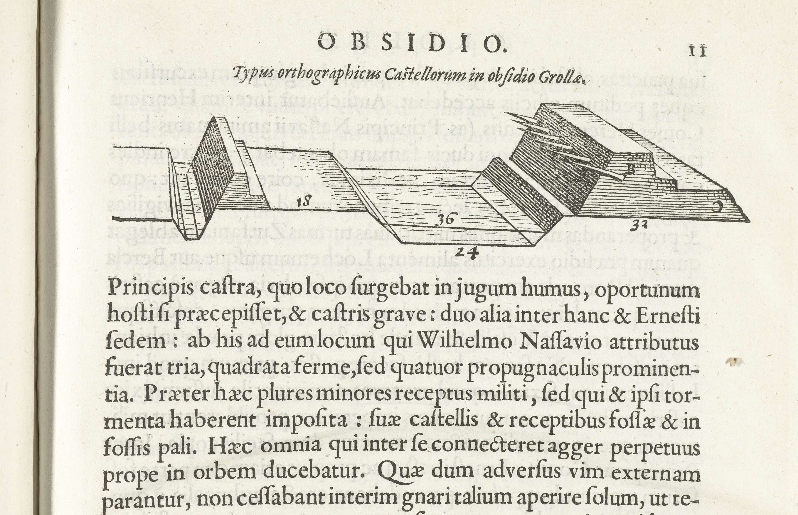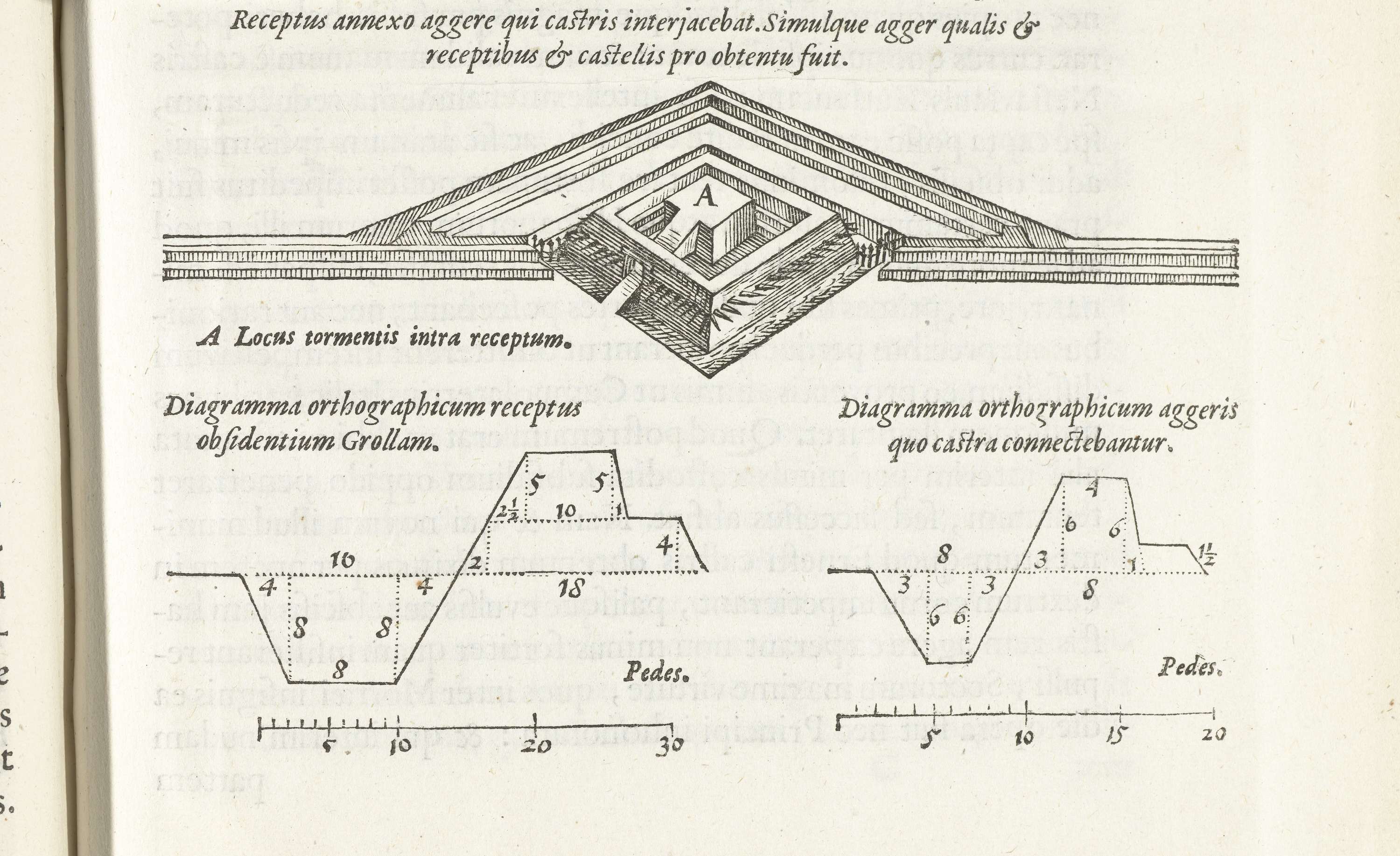 Doorsnede van de wallen van een fort tijdens het bel...