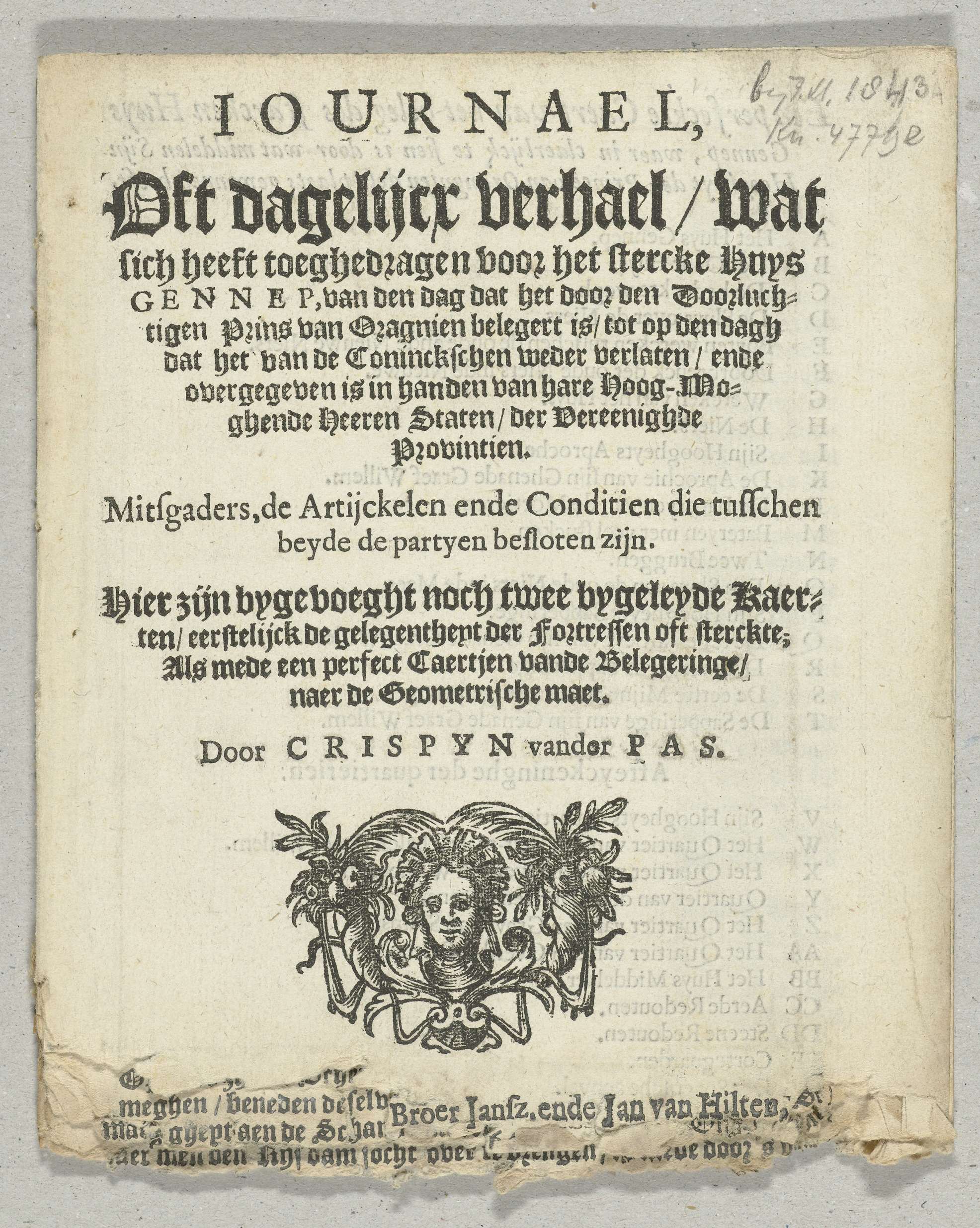 Titelpagina van het pamflet Iournael, Oft dagelijcx ...