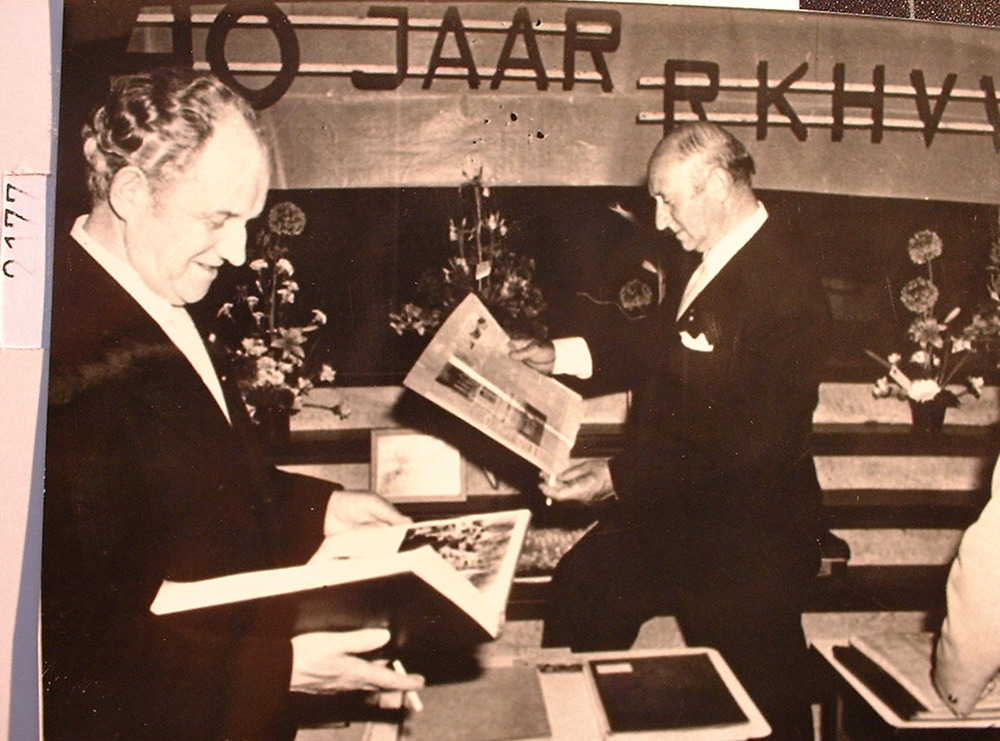 Henk Siepman en Jan van Onna tijdens een receptie bi...