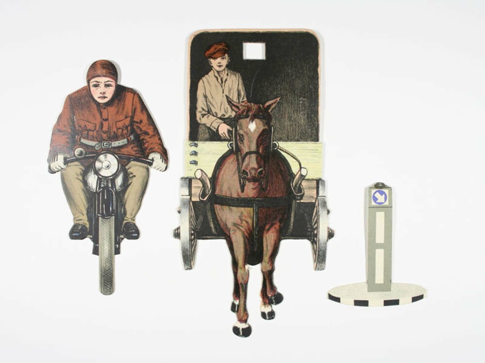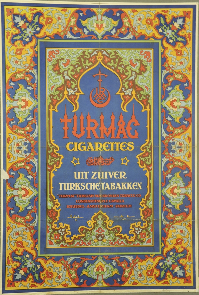 Gekleurde reclameplaat van papier en stof met tekst ...