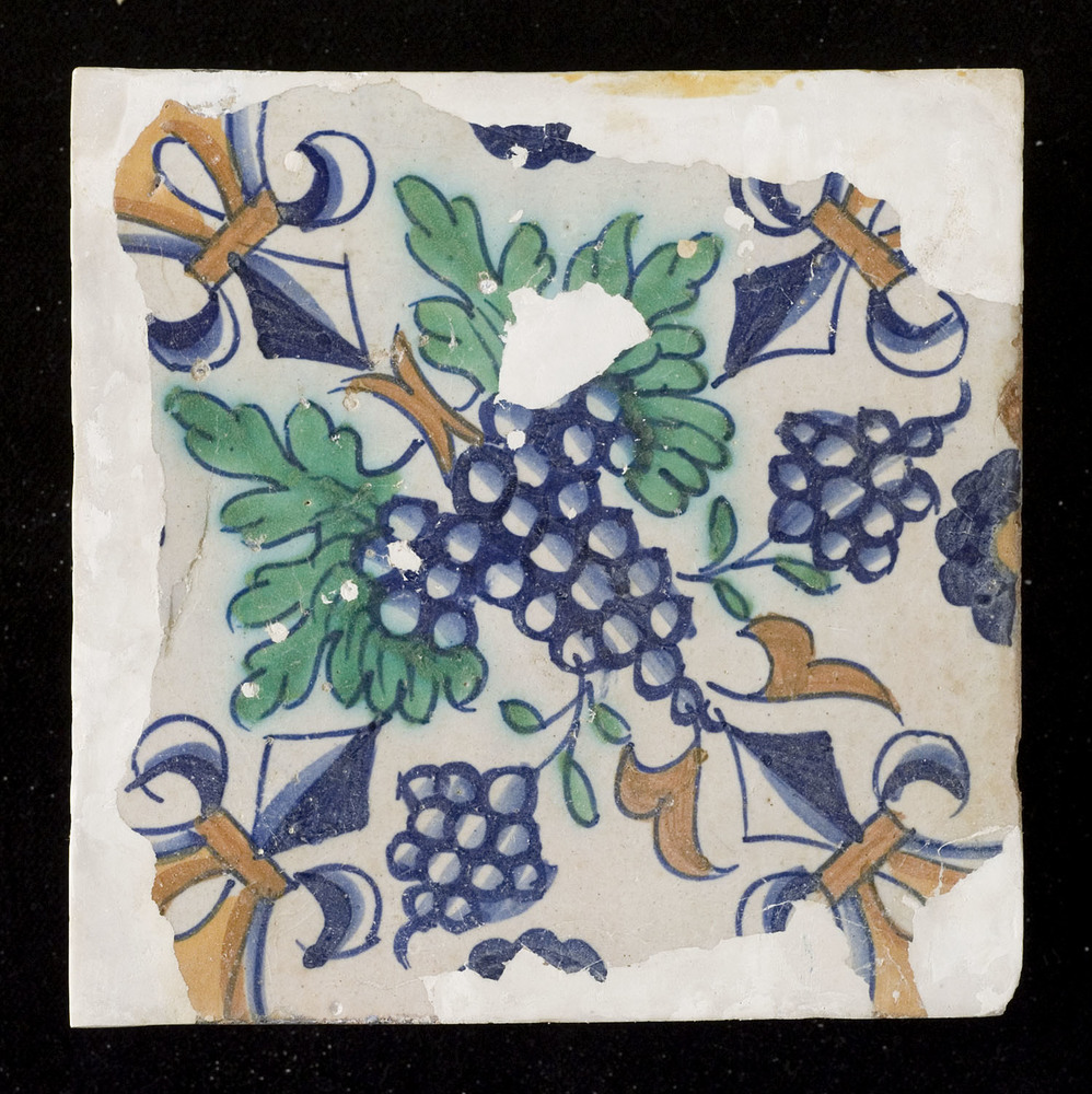 Tegel van keramiek met tinglazuur, voorstellende: or...