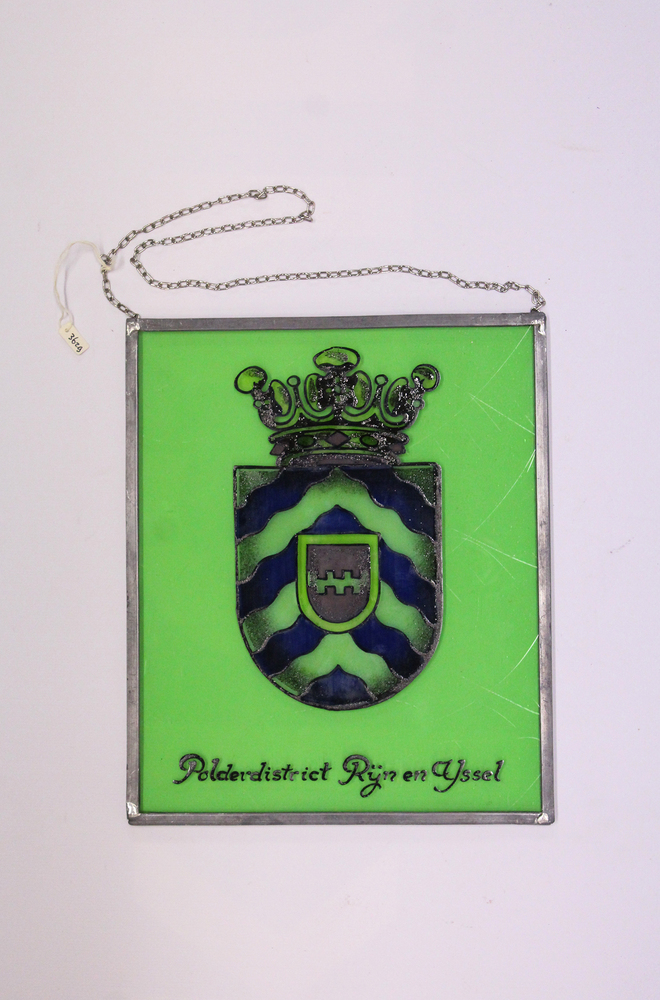 Glas-in-lood raam met een voorstelling van het wapen...