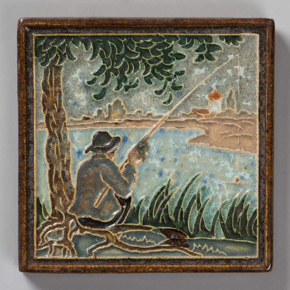 Tegel in cloisonné-techniek, met voorstelling: Visse...