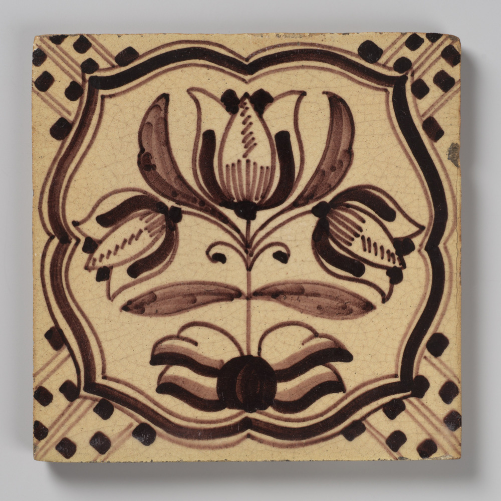 tegel van aardewerk in transfertechniek, voorstellen...
