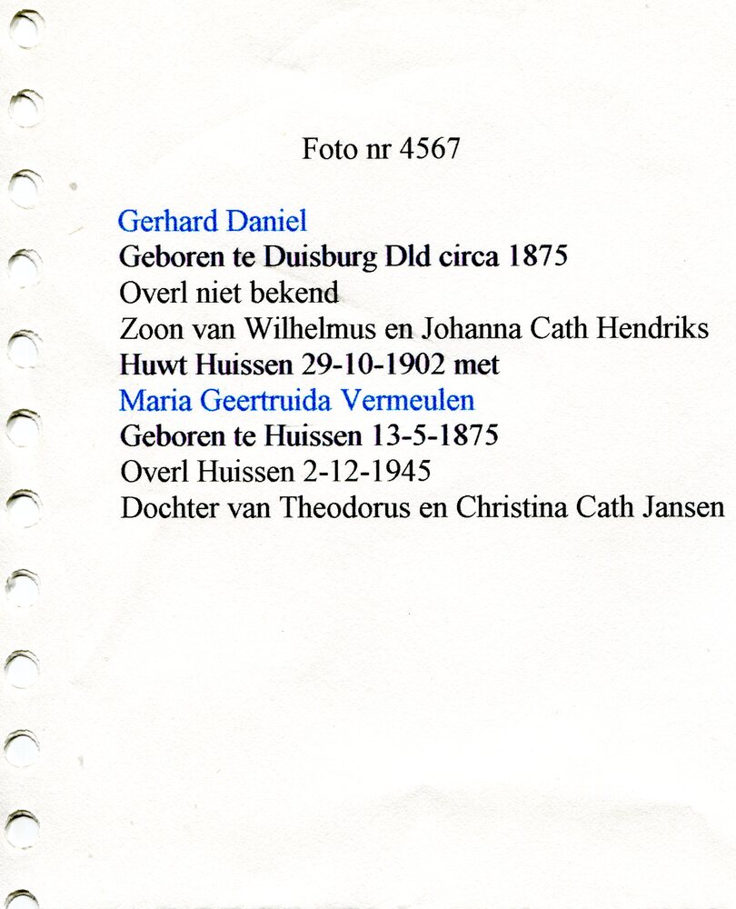 Gerhard Daniel gehuwd met Maria Geertruida Vermeulen.