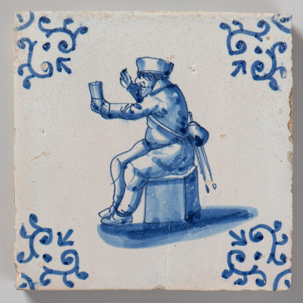 tegel van aardewerk met tinglazuur, voorstellende: m...