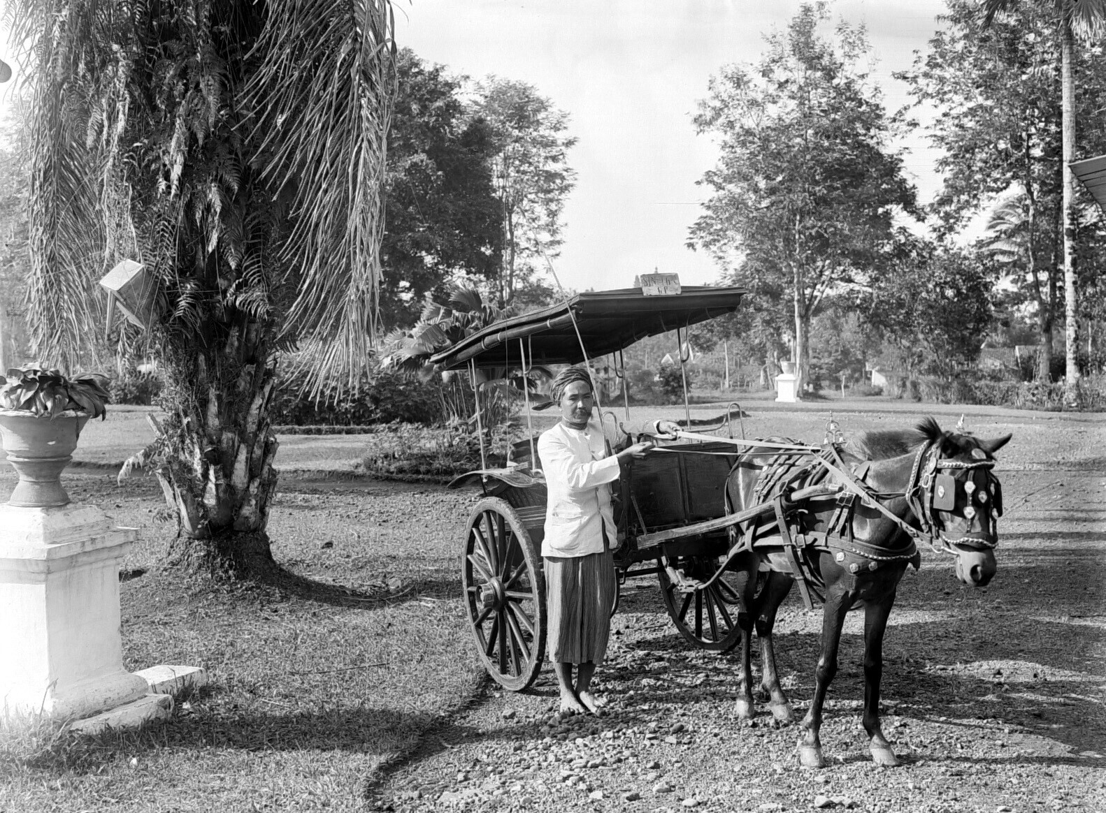 Een sado, een rijtuig voortgetrokken door een paard