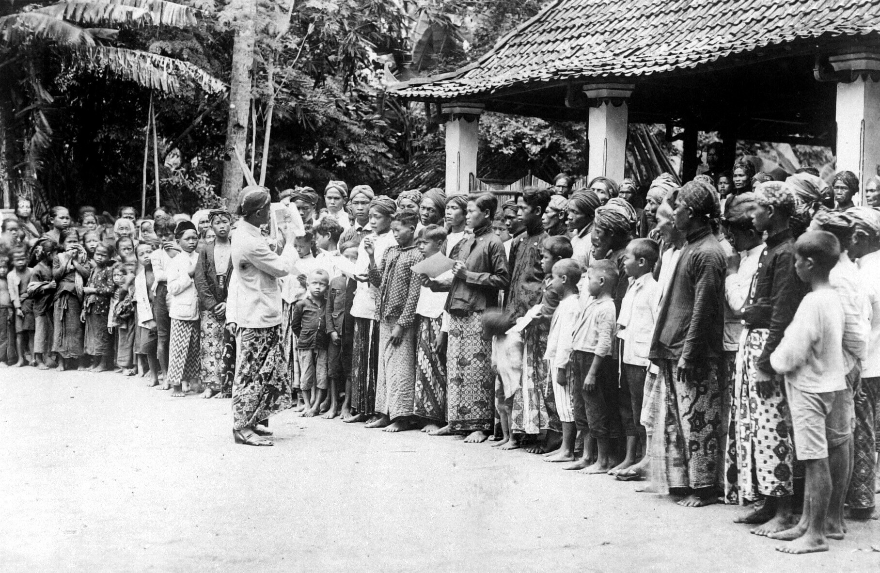Javaanse moeder met kinderen, één in draagdoek