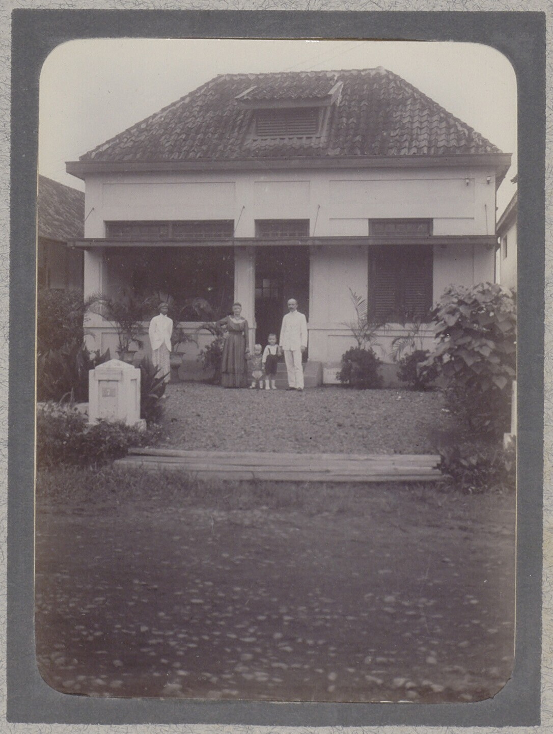 Portret van Marto Oetomo op het terras in de tuin