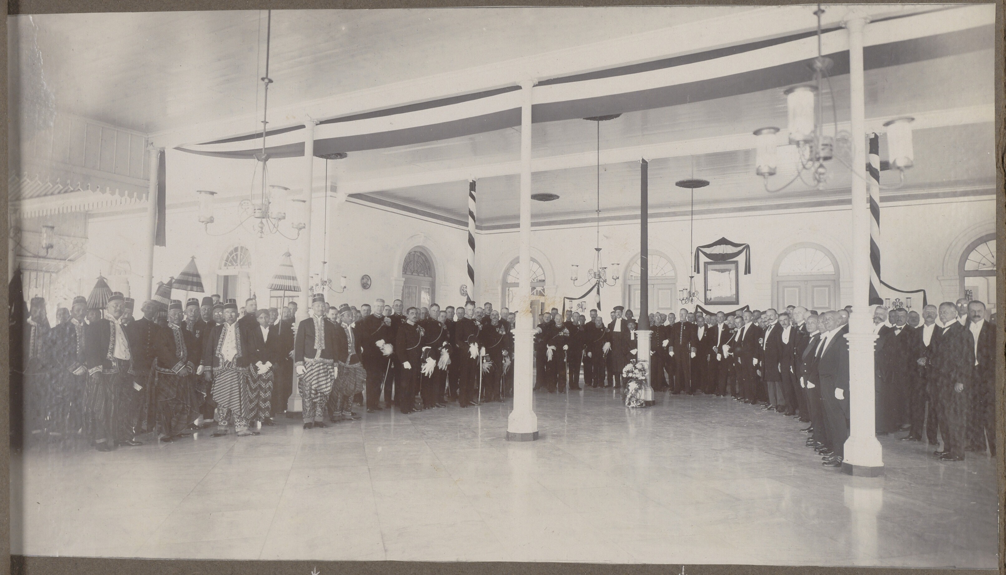 De regent met het plaatselijke bestuur te Magelang