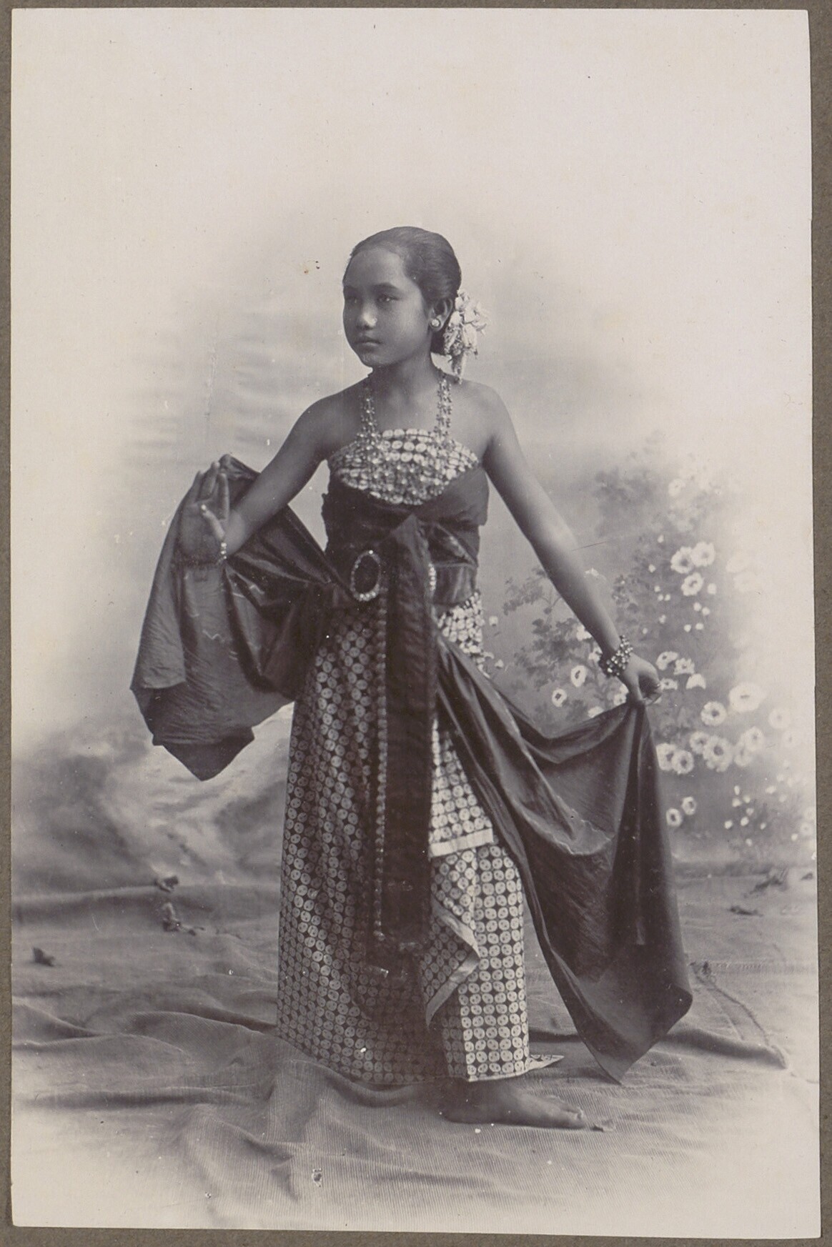 Een portret van een Javaanse vrouw in ceremoniële br...