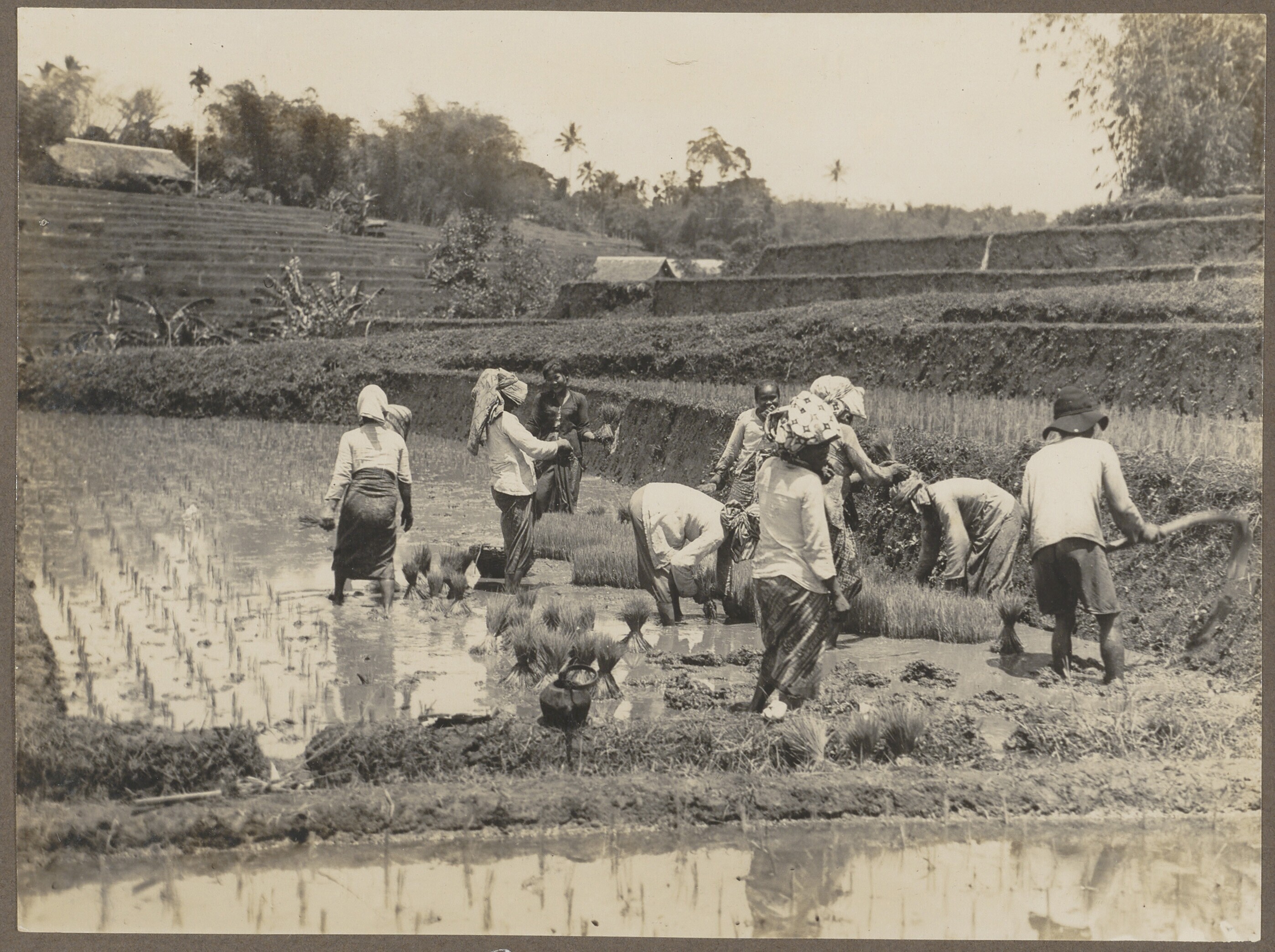 Javaanse vrouwen planten jonge rijst