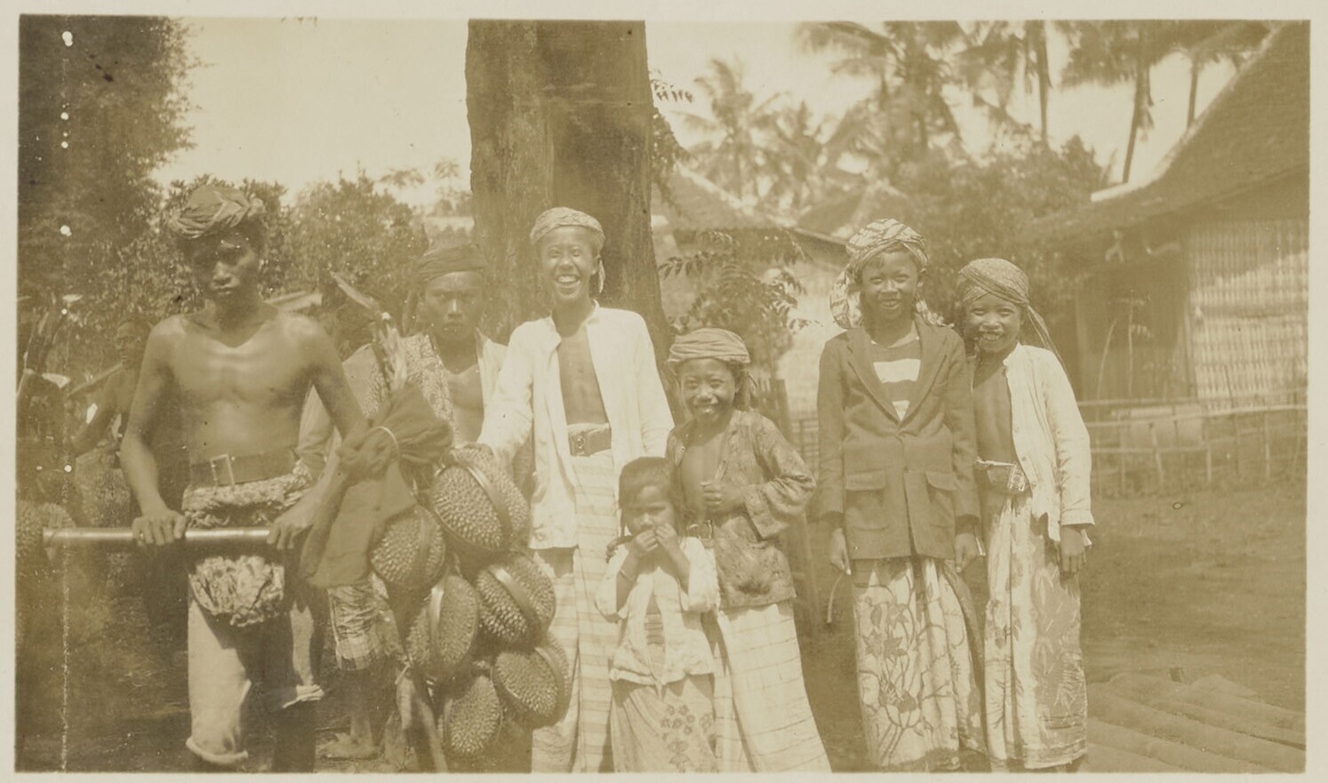 Een groep Javaanse mannen en kinderen lachen vrolijk...