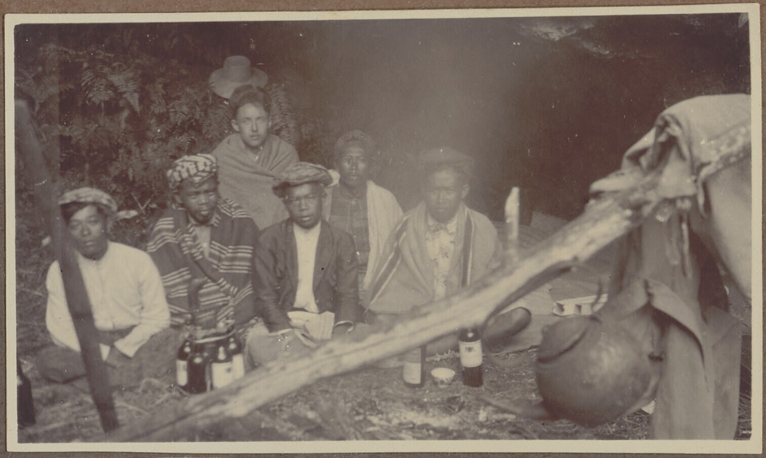 Bivak met Saja en dragers. Rechts op de matten in de...