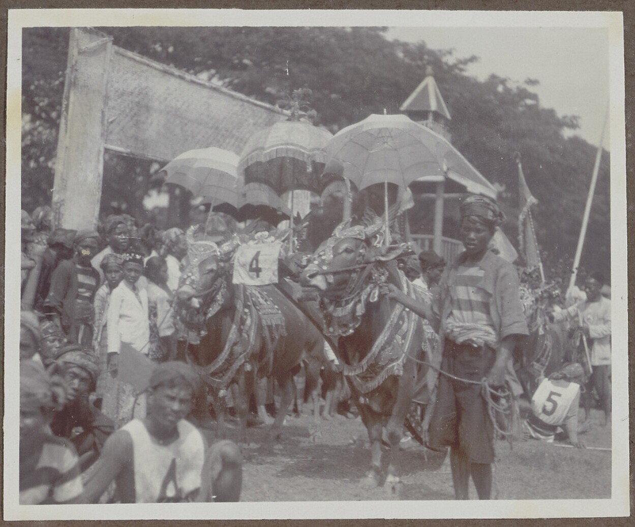 De karbouwen zijn mooi opgetuigd ter ere van een vol...