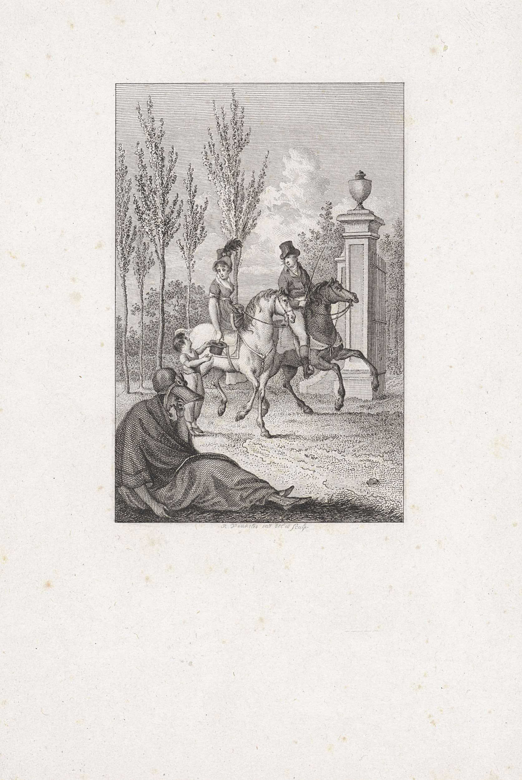 Ruiter geeft een bedelende jongen munten