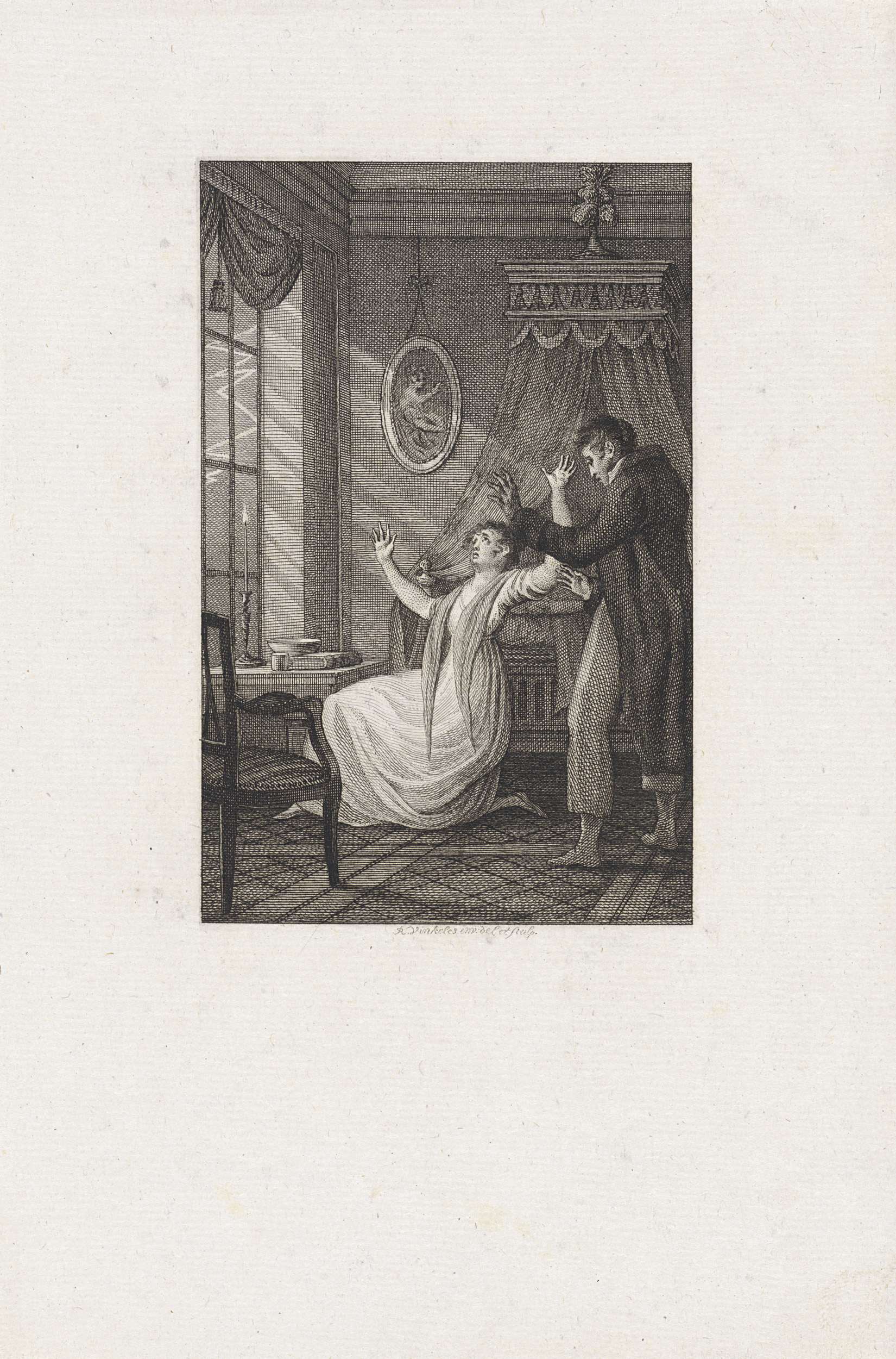 Man en vrouw in gevecht bij een bed