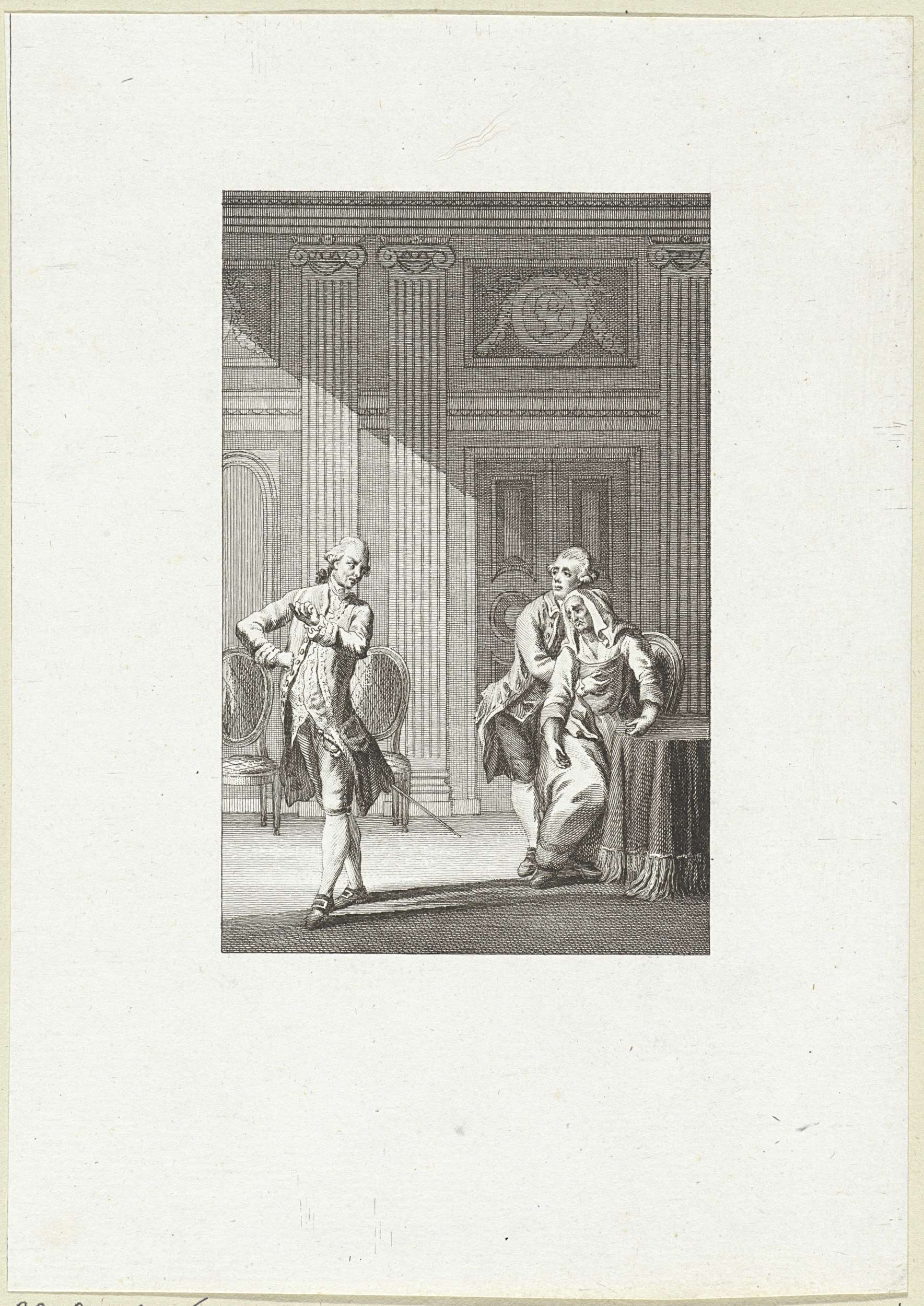Geschil tussen drie figuren in een vertrek