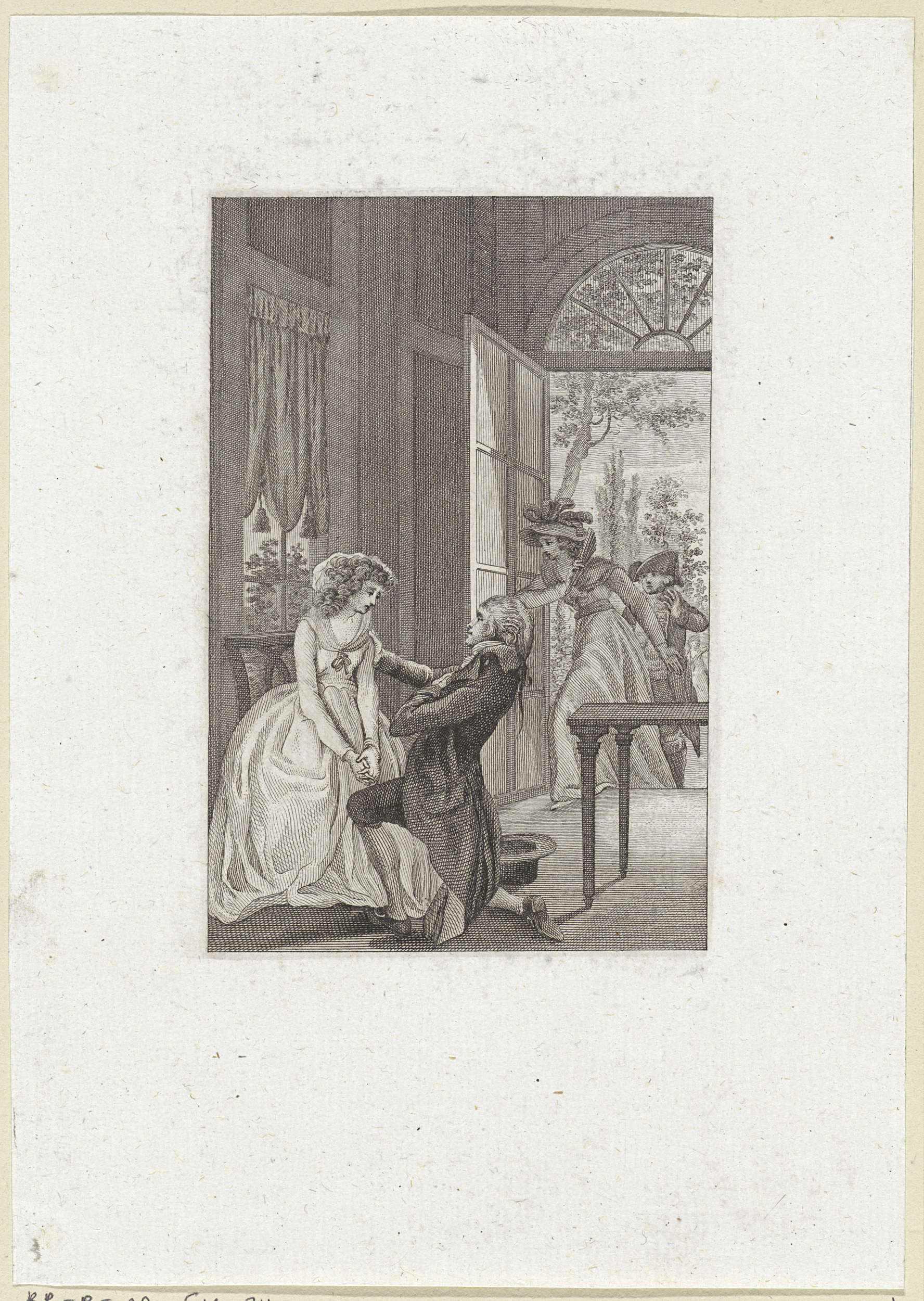 Personificatie en een geknielde man /Kussend paar aa...