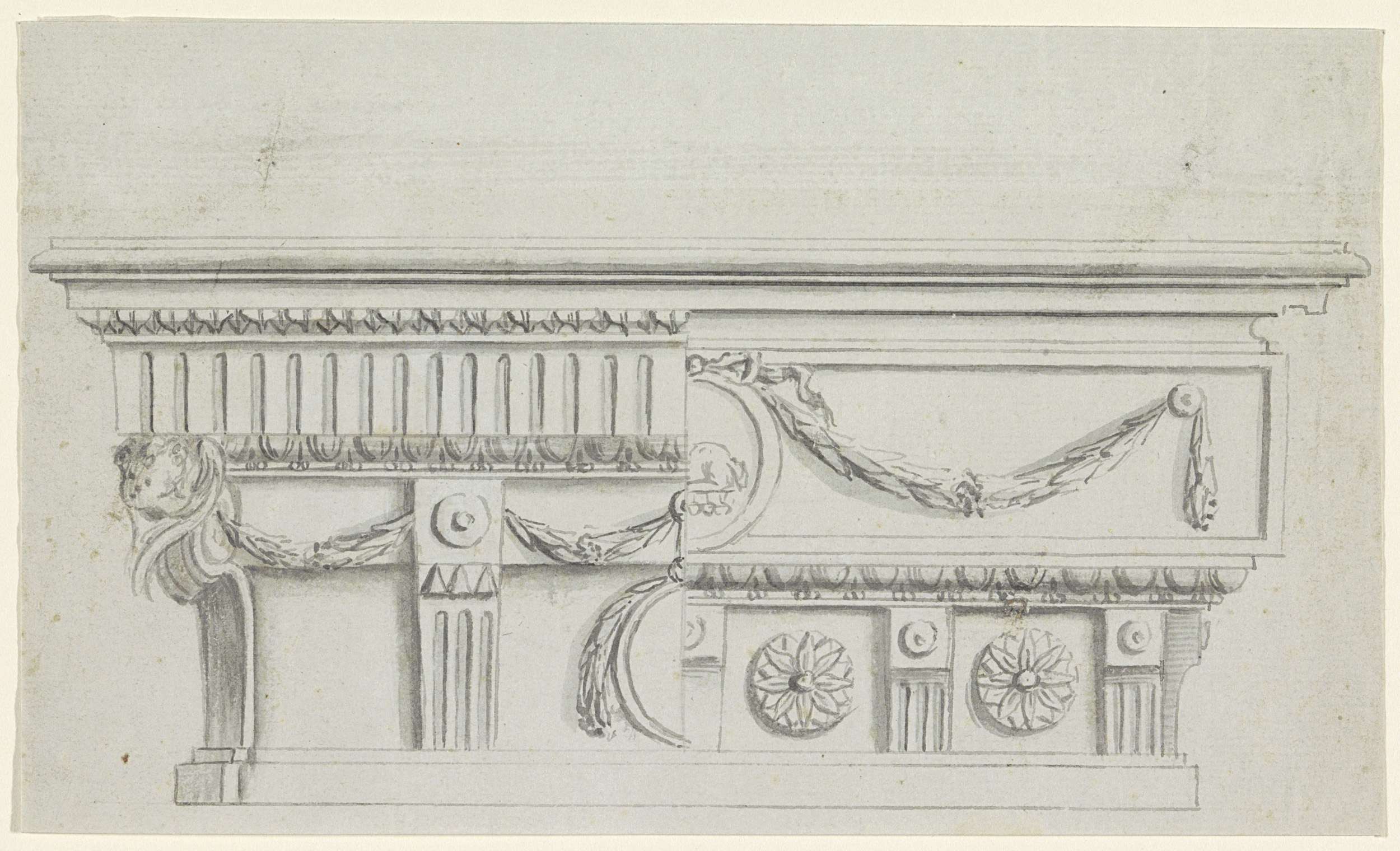 Ontwerp voor een classicistische gevel met beeldhouw...