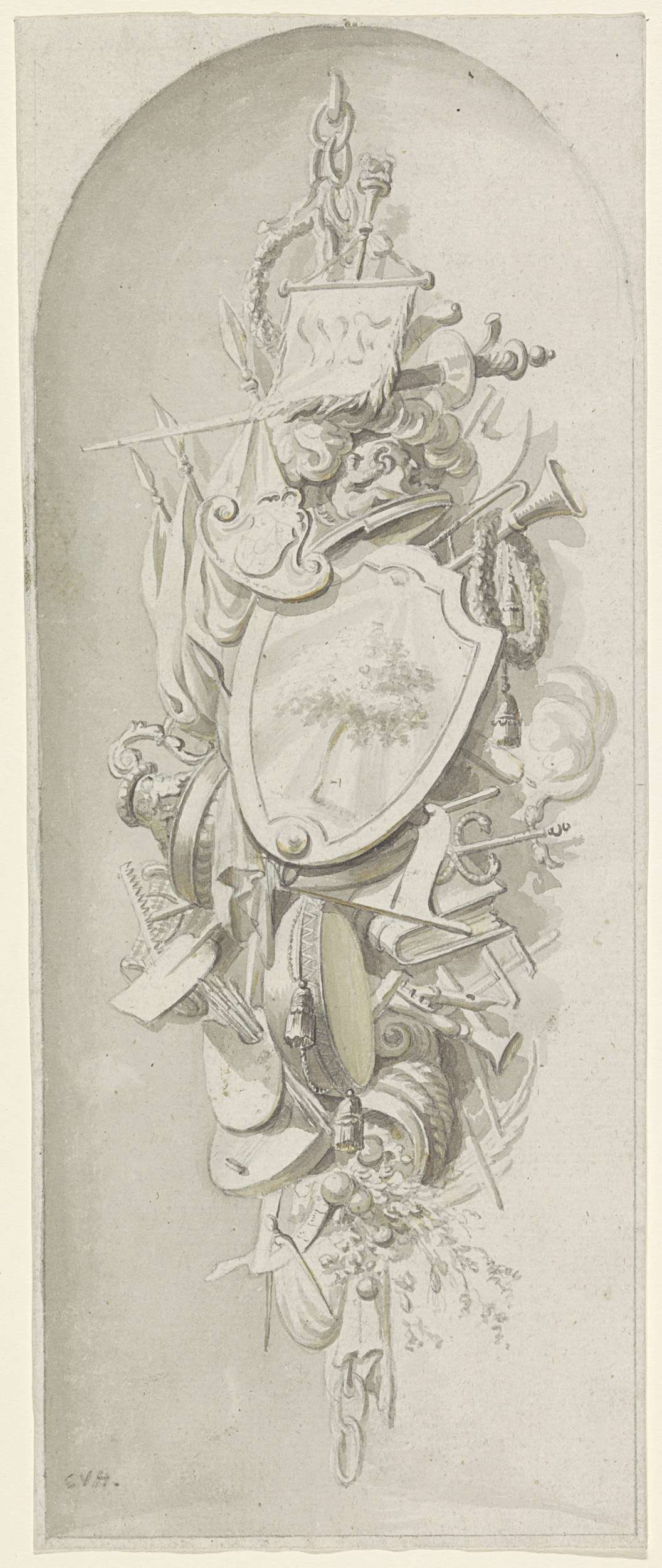 Voetstuk met cherubijn, medaillons en guirlandes