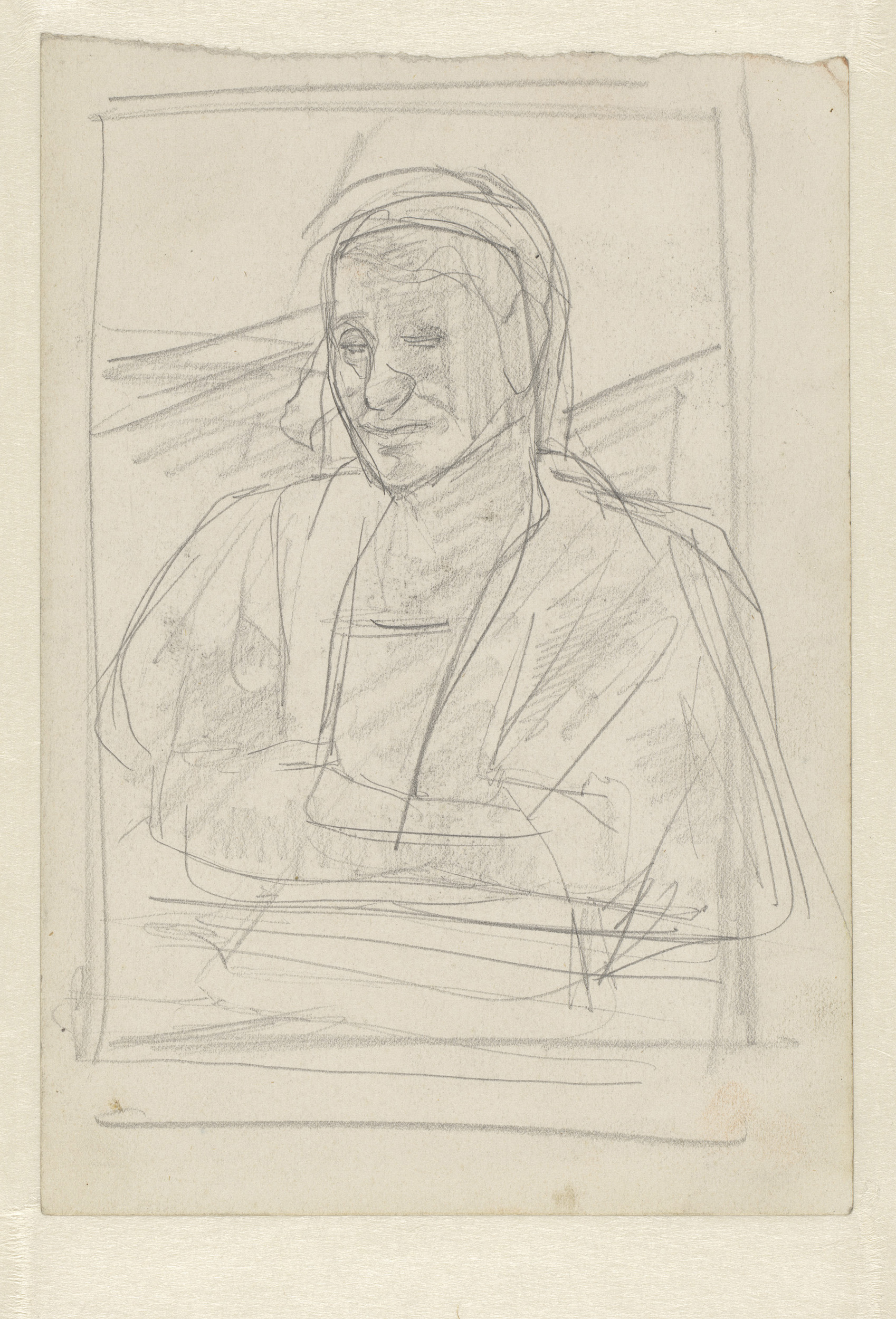 Compositie van een oude, onbekende vrouw met hoofddoek
