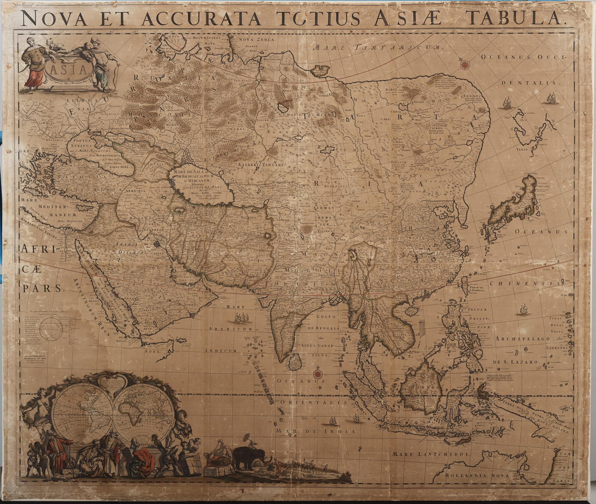 Met de hand gekleurde wandkaart van Azië op zes blad...