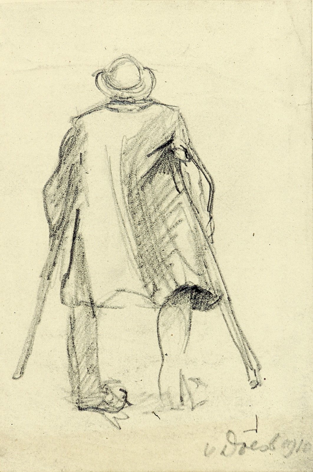 Man op krukken, van achteren gezien