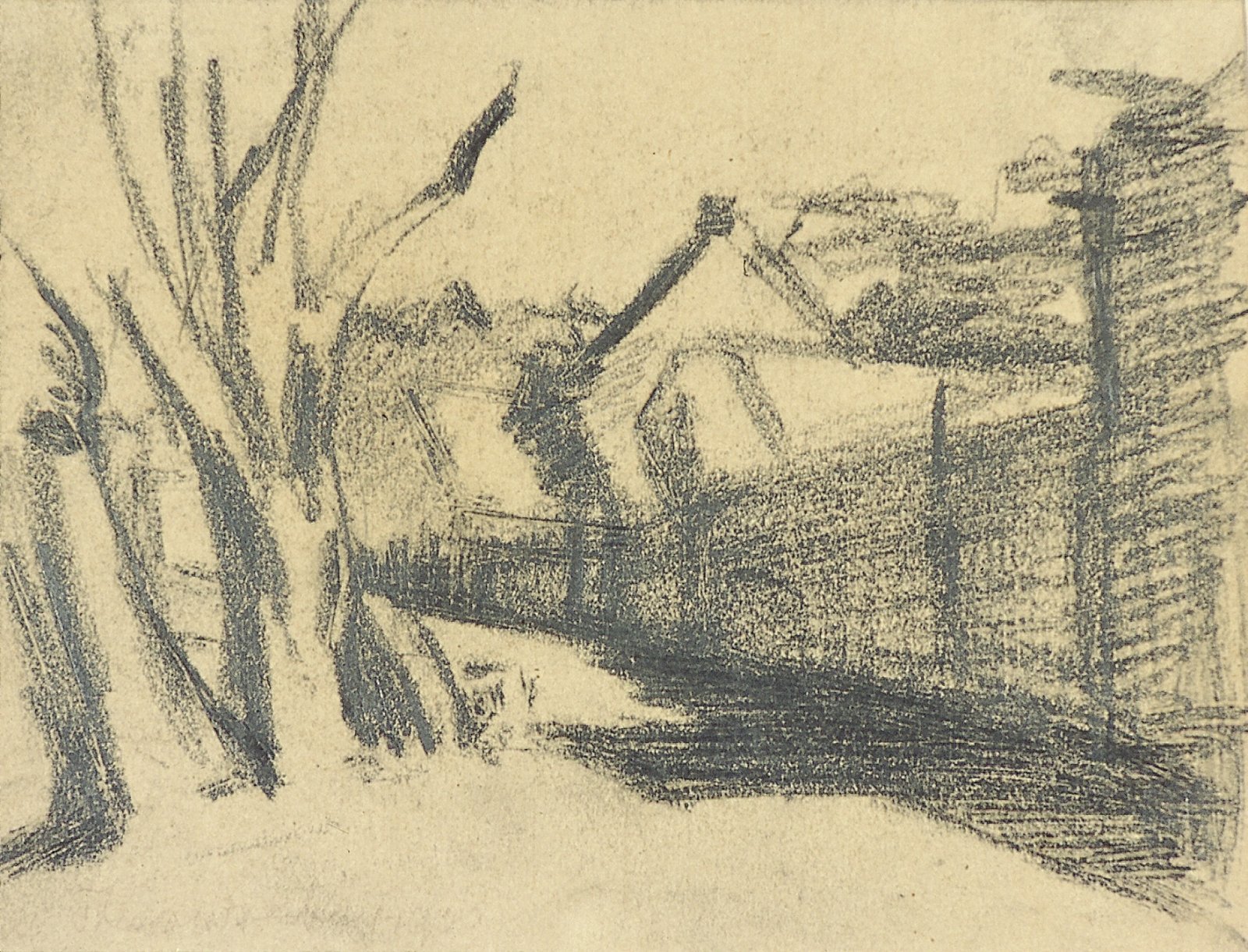 Weg met huis en bomen