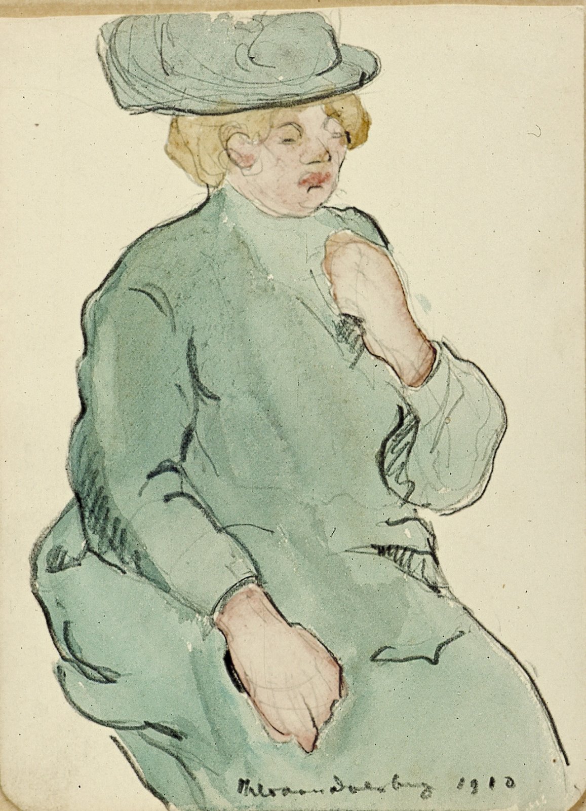 Zittende vrouw met hoed