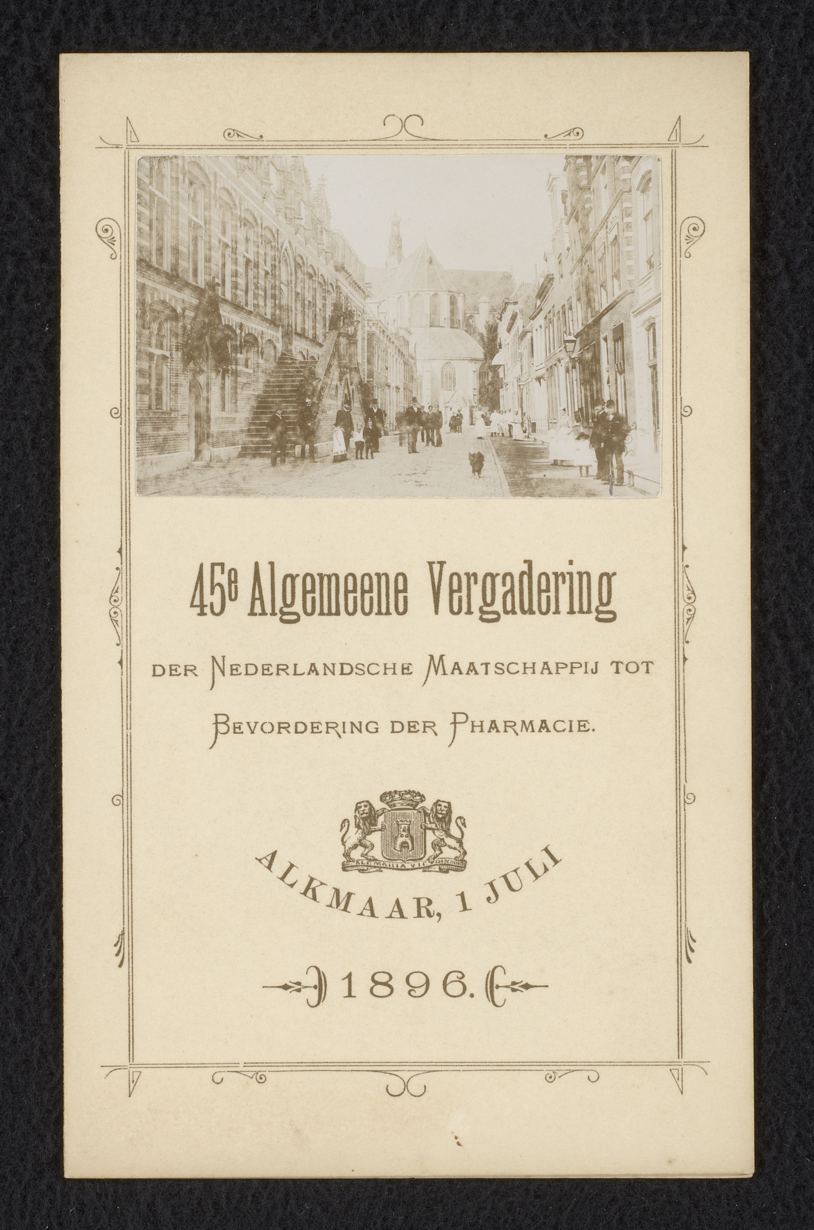 Menukaart voor het diner bij de 45e Algemeene Vergad...