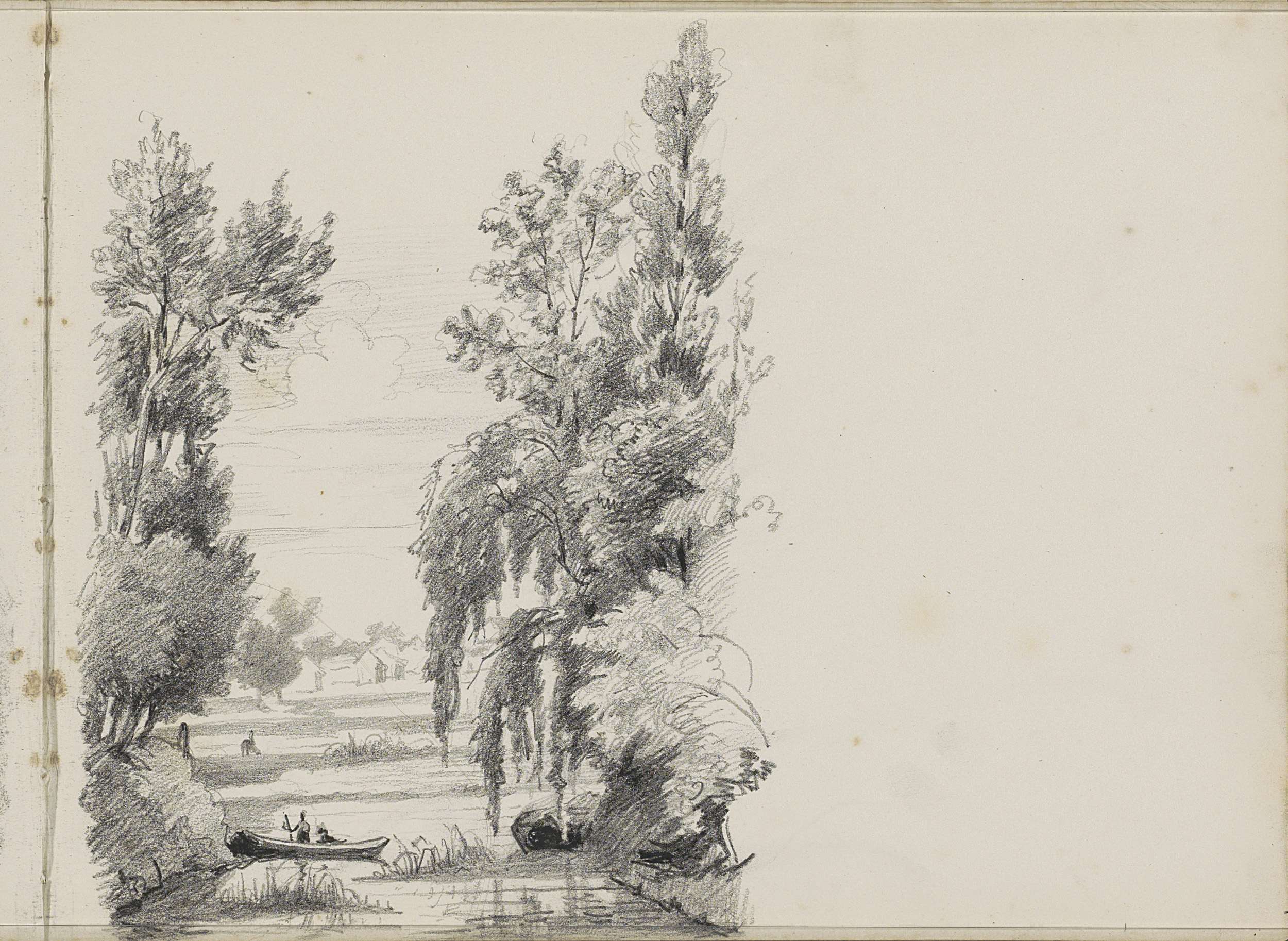 Landschap met een rivier en vee